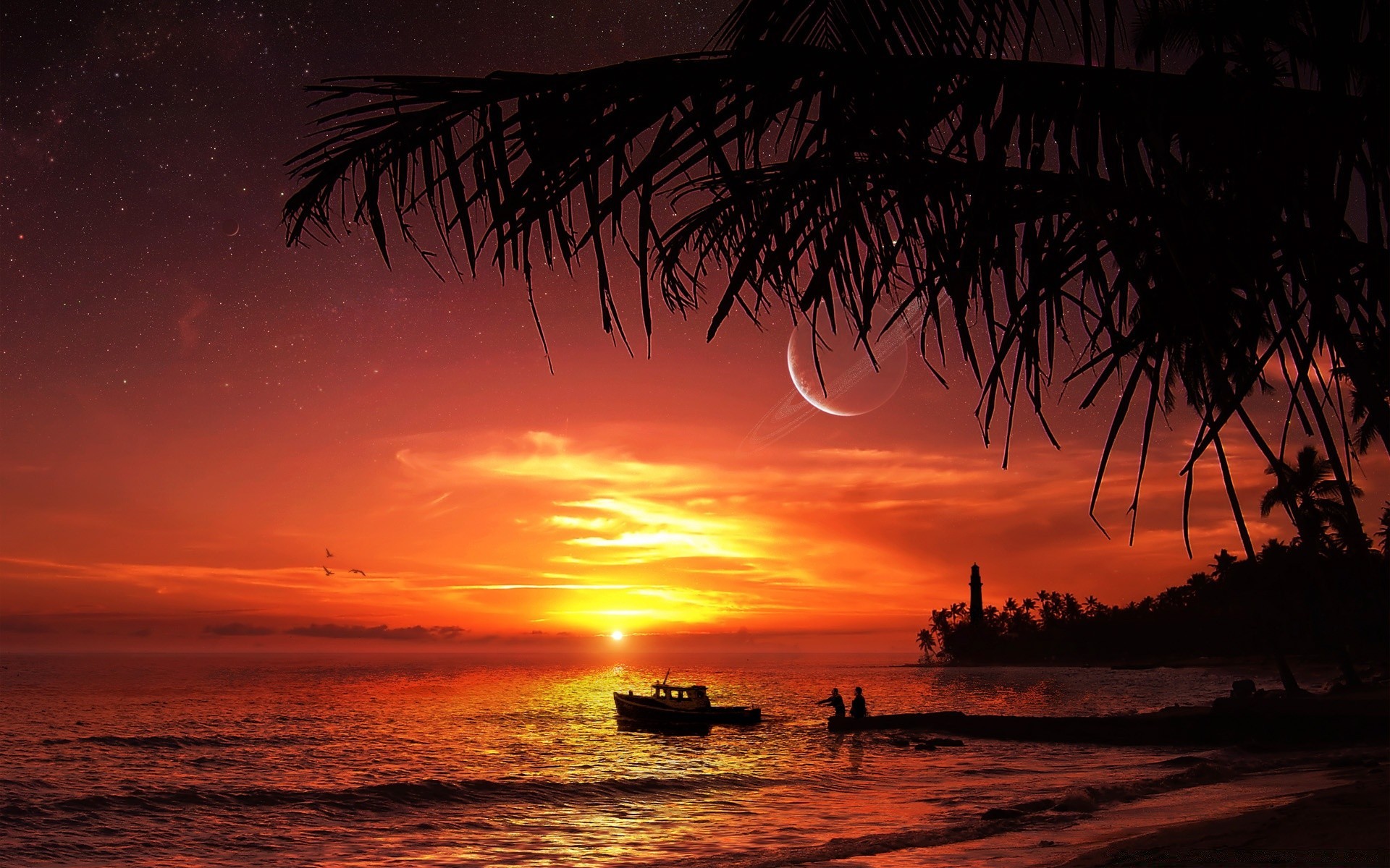 Pôr do sol brilhante em uma ilha deserta