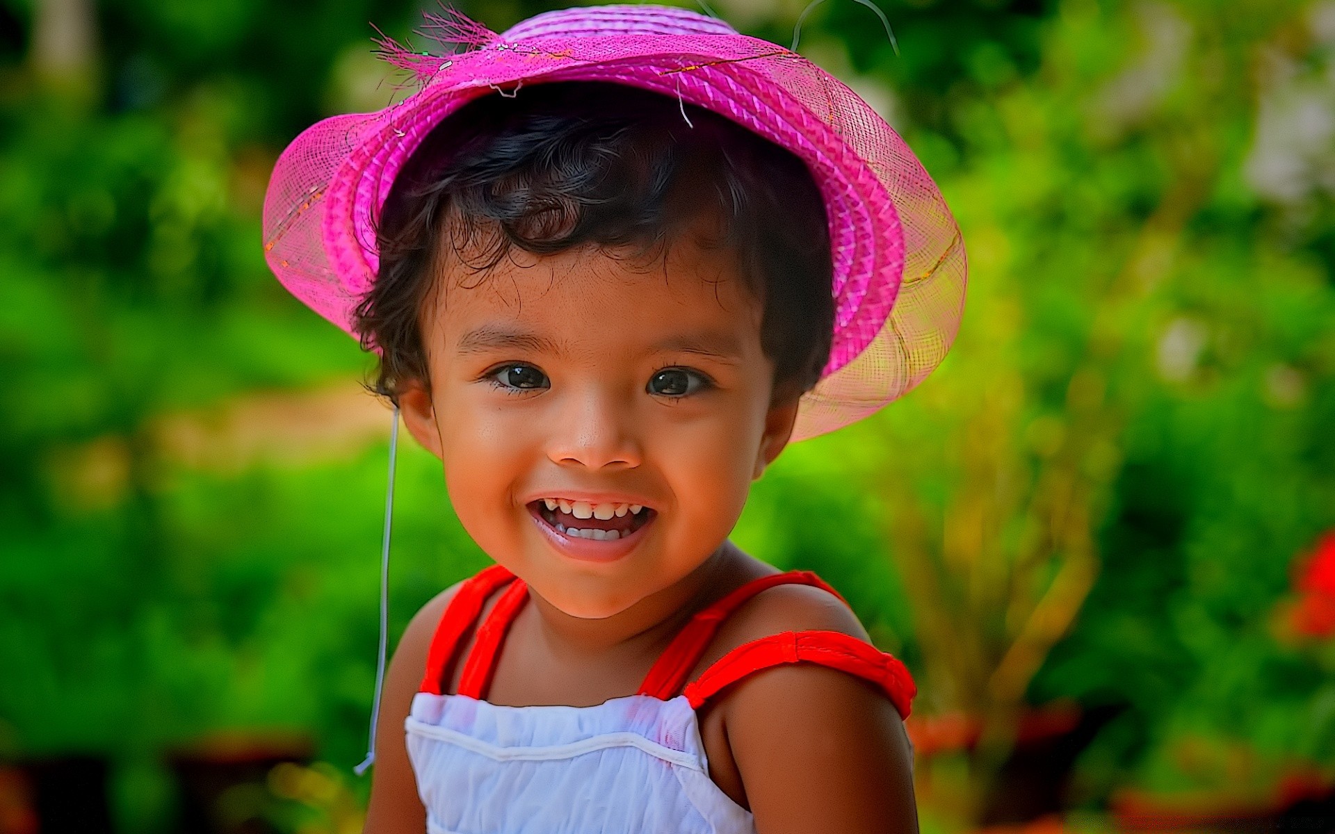 Linda garota com chapéu rosa