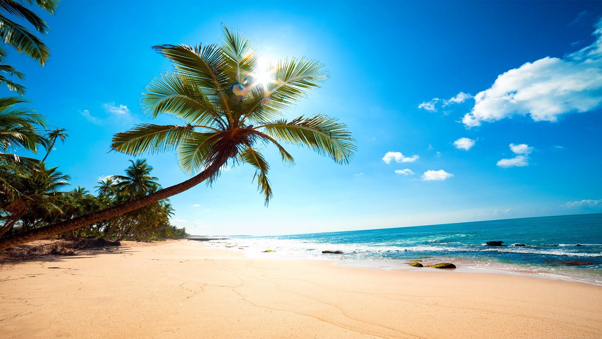 Areia do mar na praia, sob uma palmeira