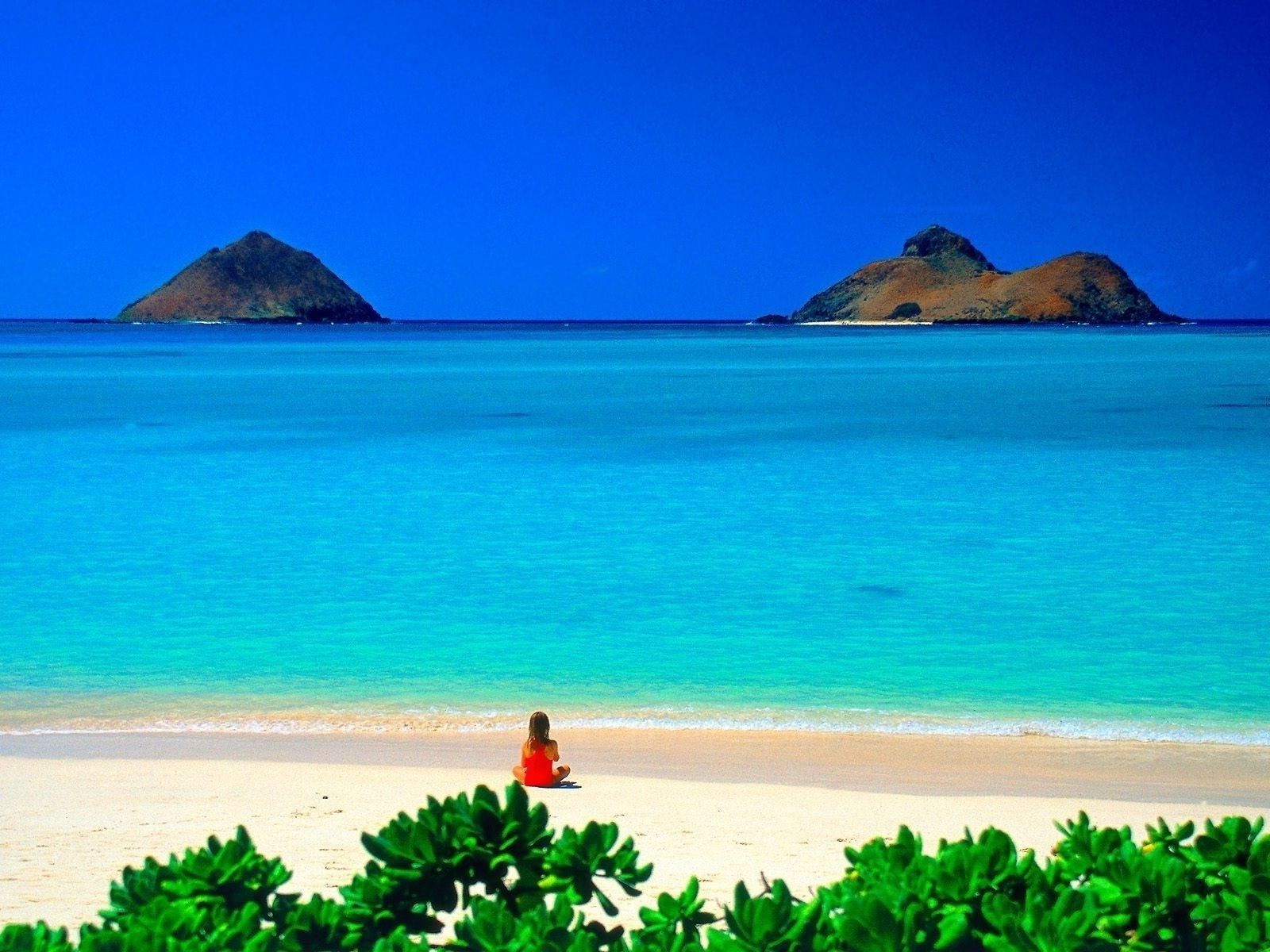 Menina na areia branca, Ilha, mar