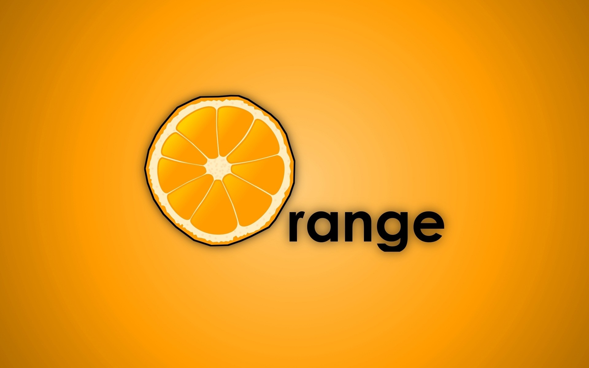 Design brilhante da palavra "Orange" com uma fatia de laranja