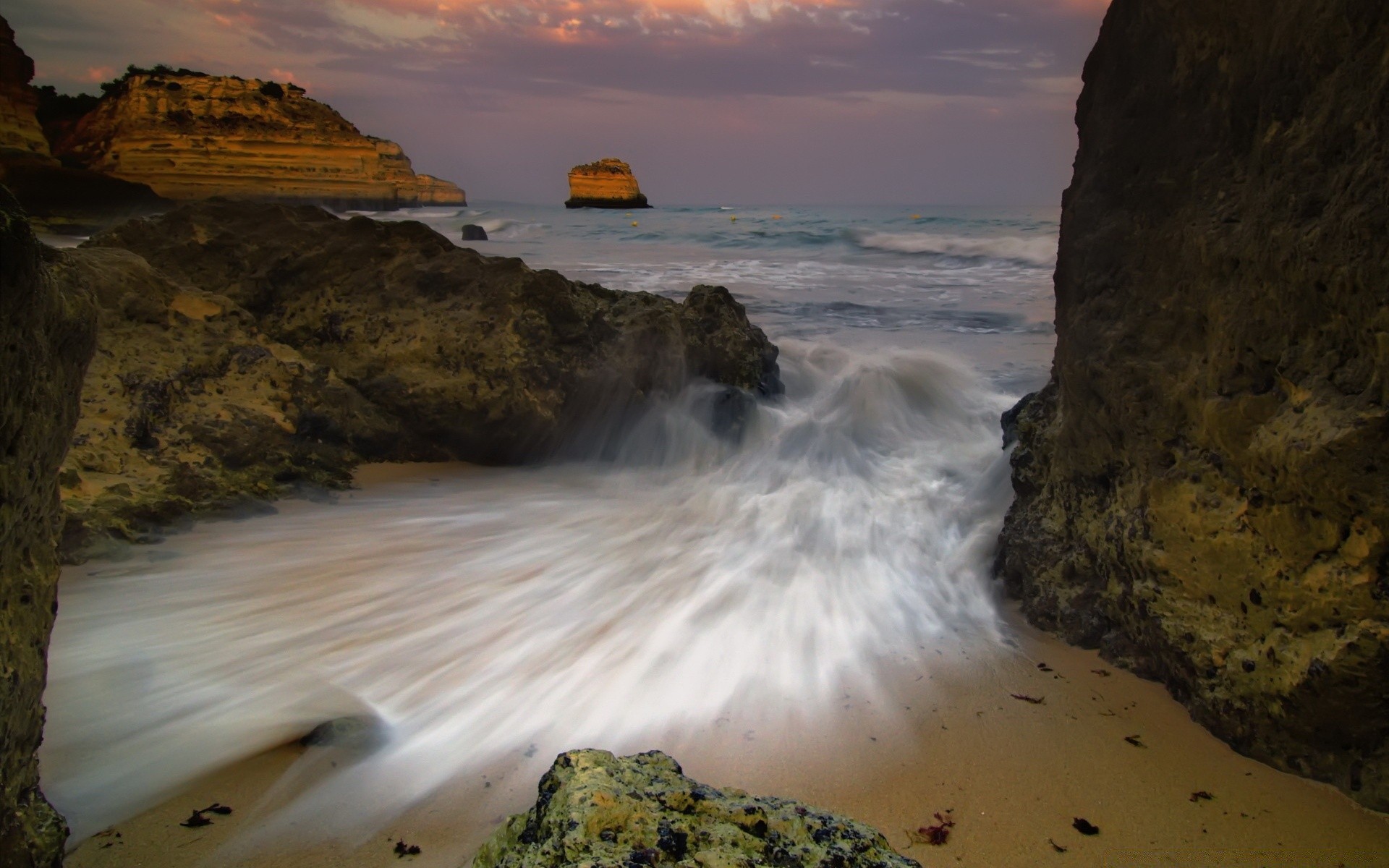 O mar cai na praia
