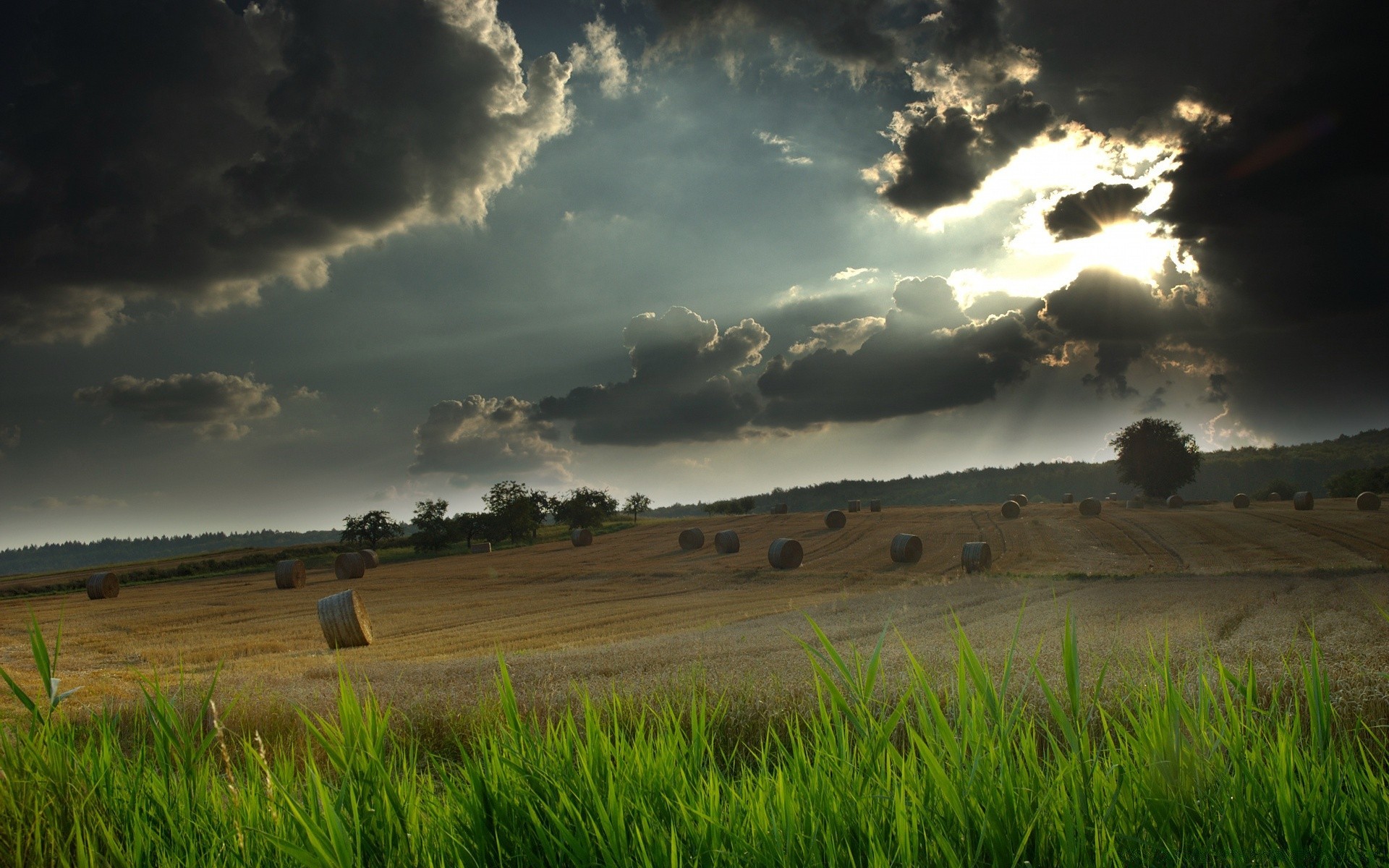 Campo com flores vermelhas contra um fundo de árvores e uma colina