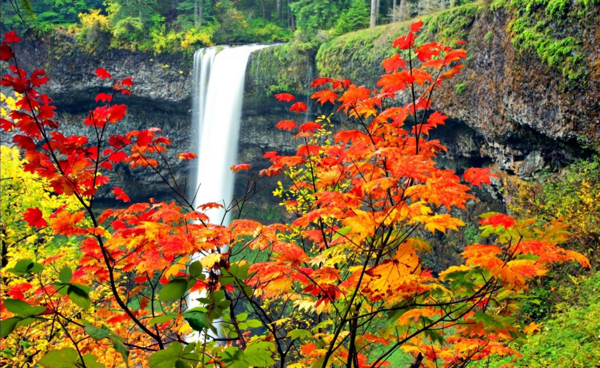 Natureza Cachoeira verde amarelo folhas KR
