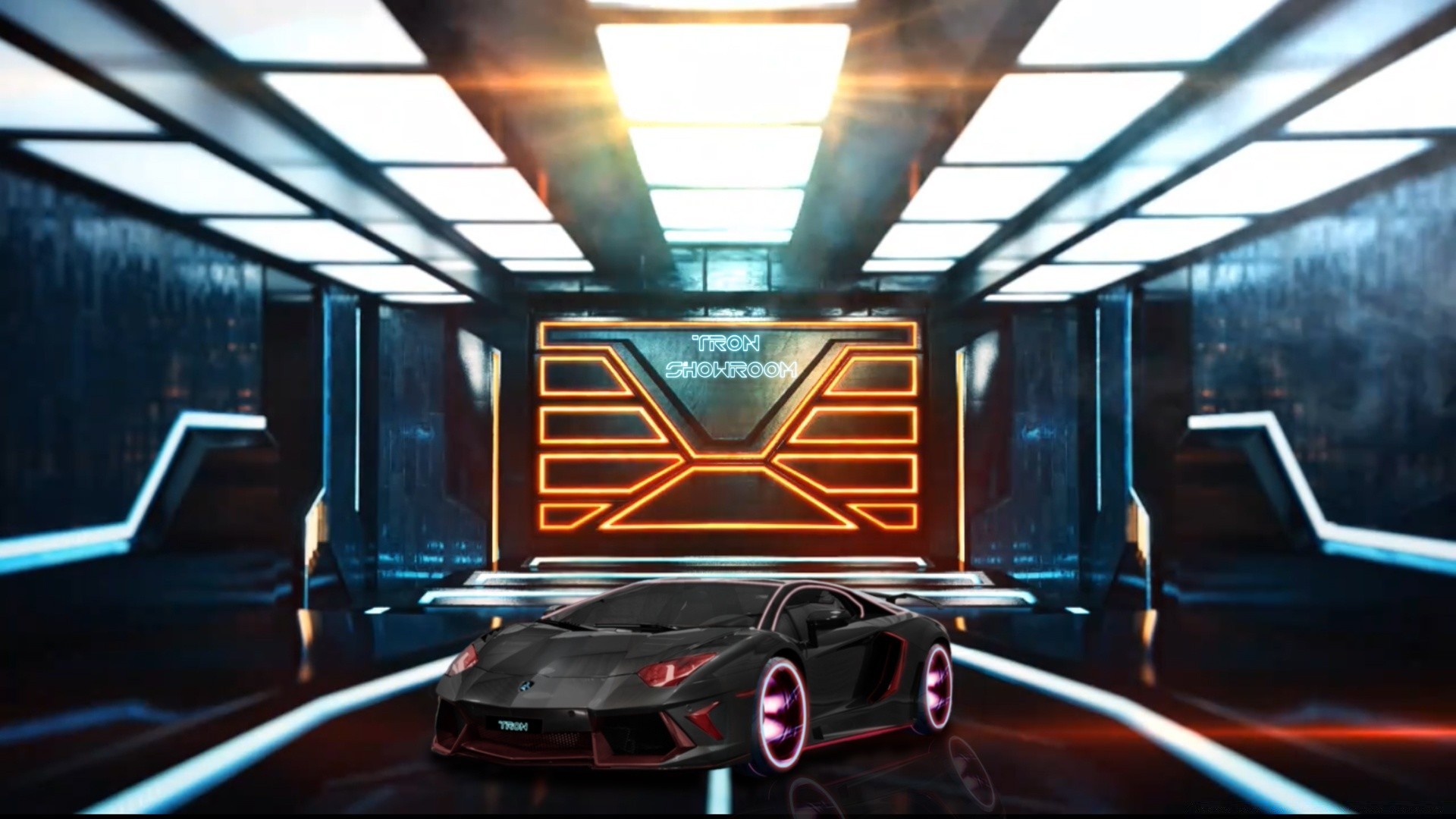 Personagens do filme em trajes luminosos