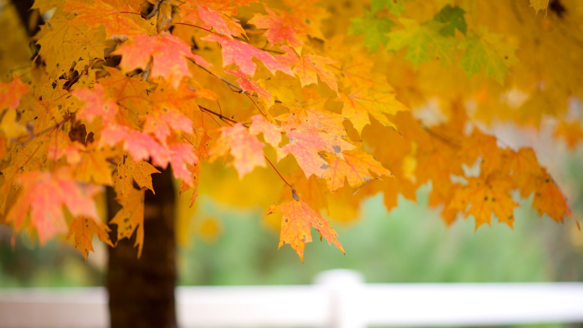 Frutas amarelas, vermelhas e verdes brilhantes caem na água