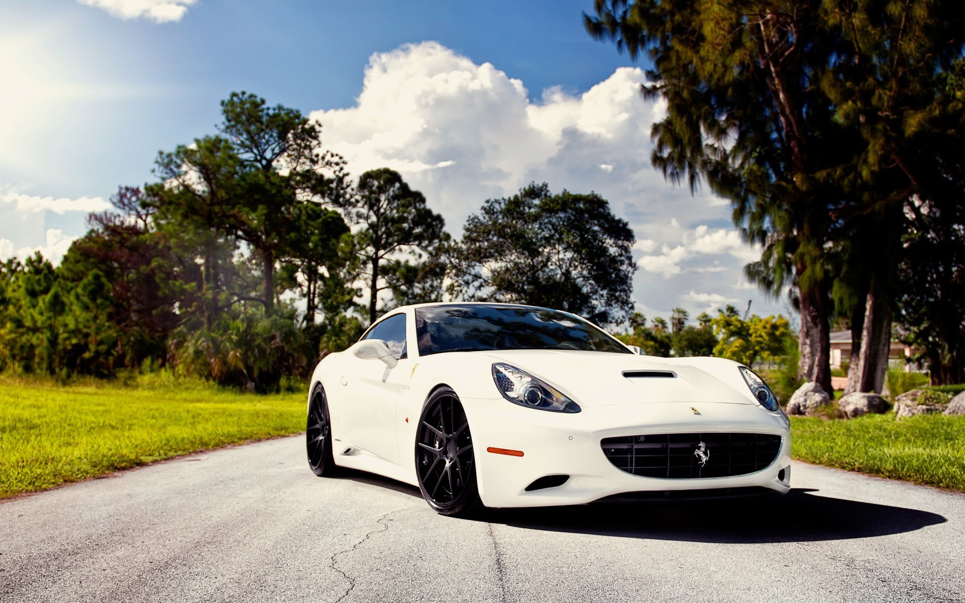 Ferrari cinza na rua perto de uma árvore