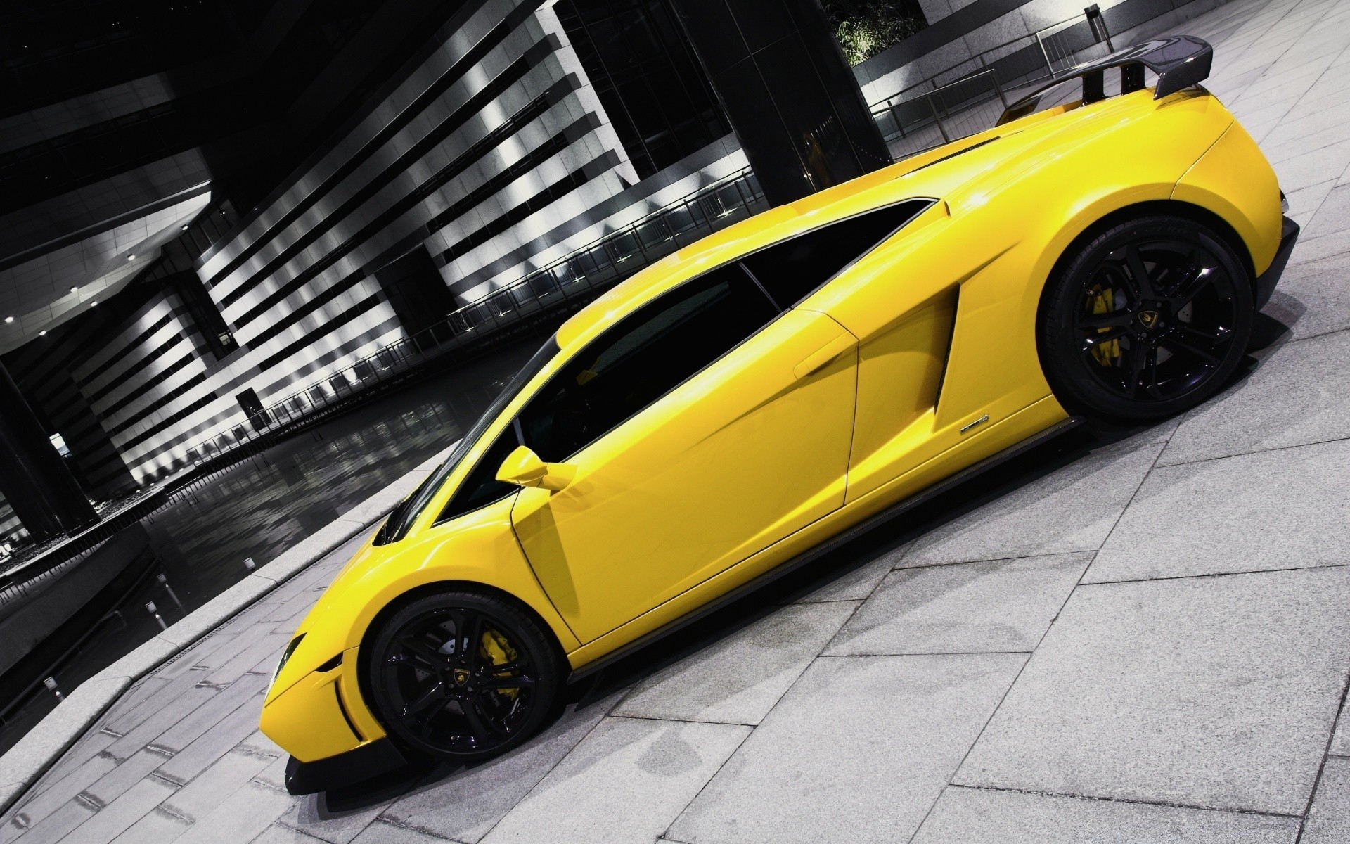 Carro preto na reflexão do asfalto