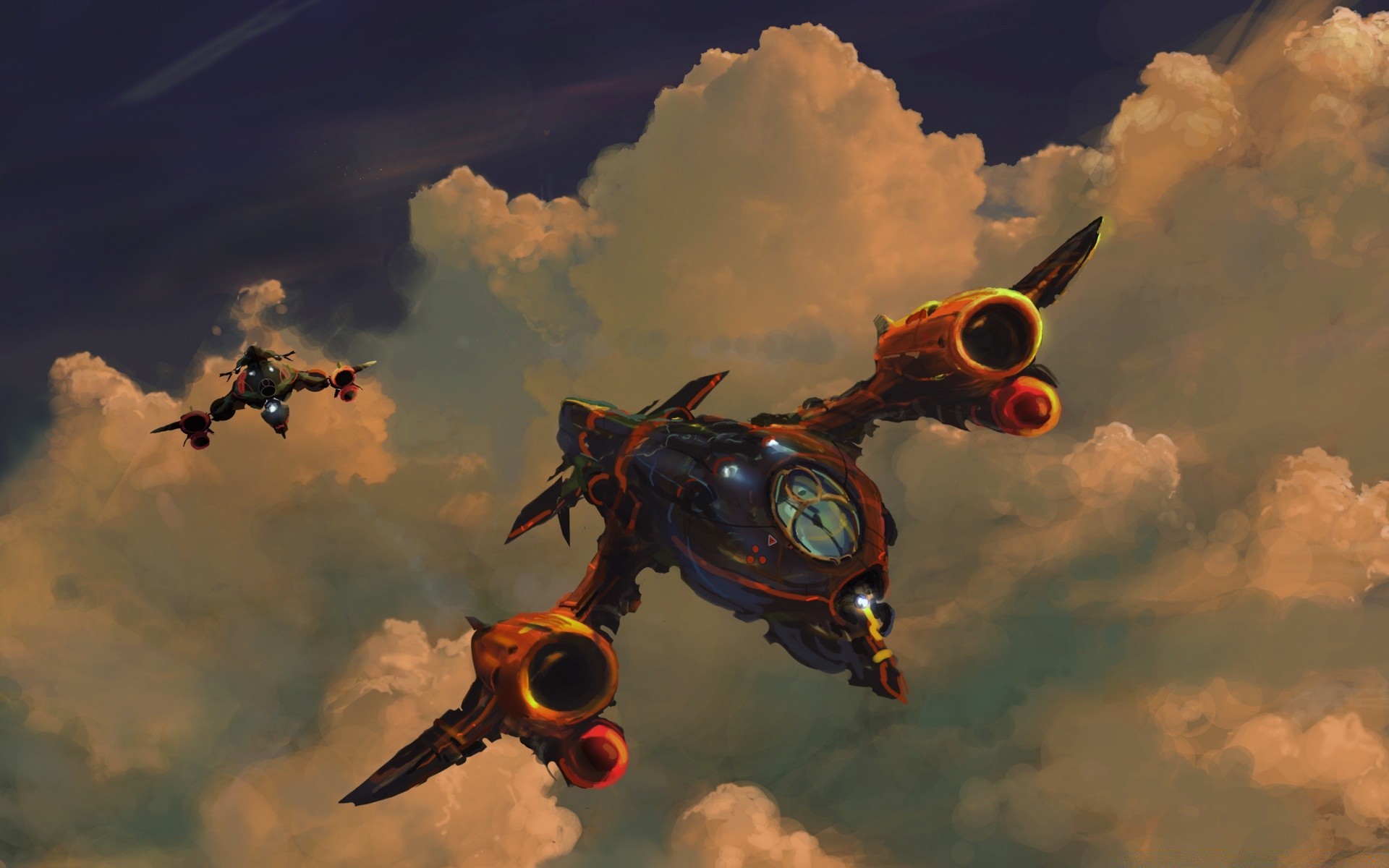 Avião fantástico voando nas nuvens