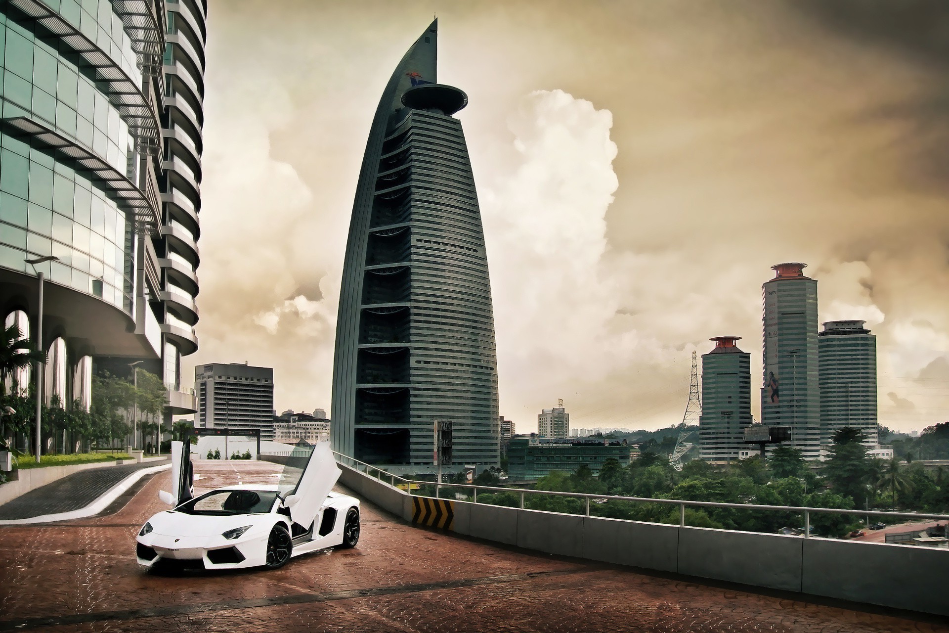 Foto em preto e branco de uma paisagem urbana com arranha-céus