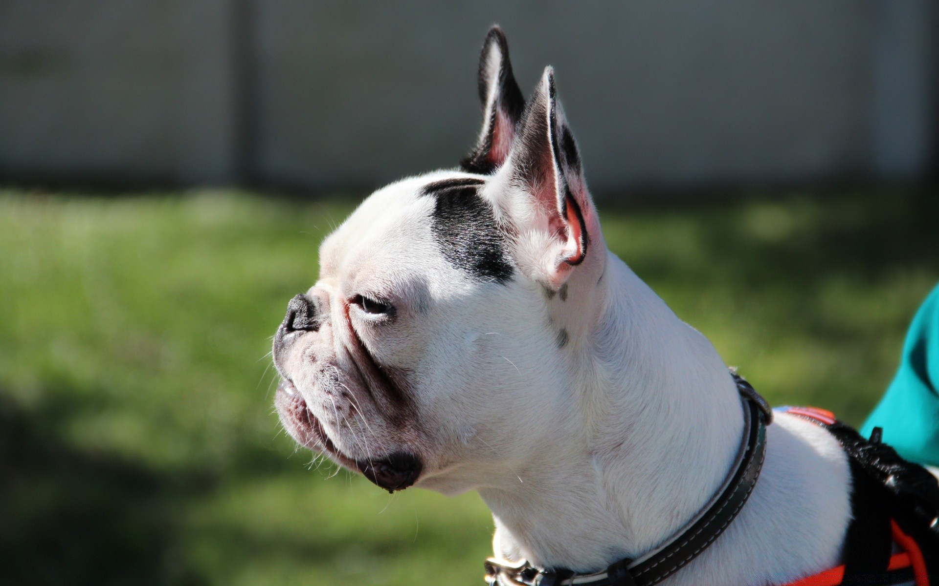 Filhote de cachorro branco pequeno bonito com orelha preta