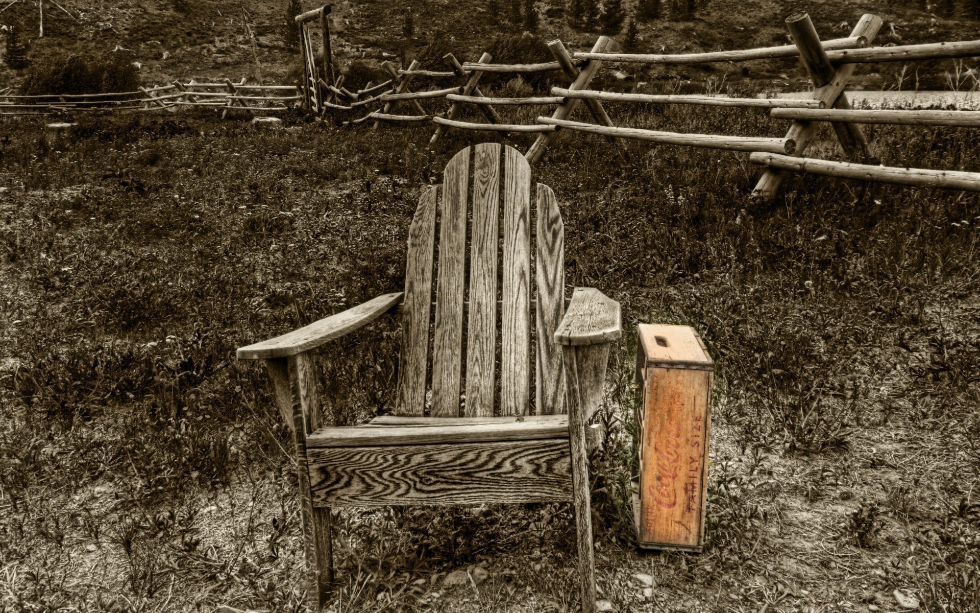 Cadeira de madeira antiga no pátio da casa