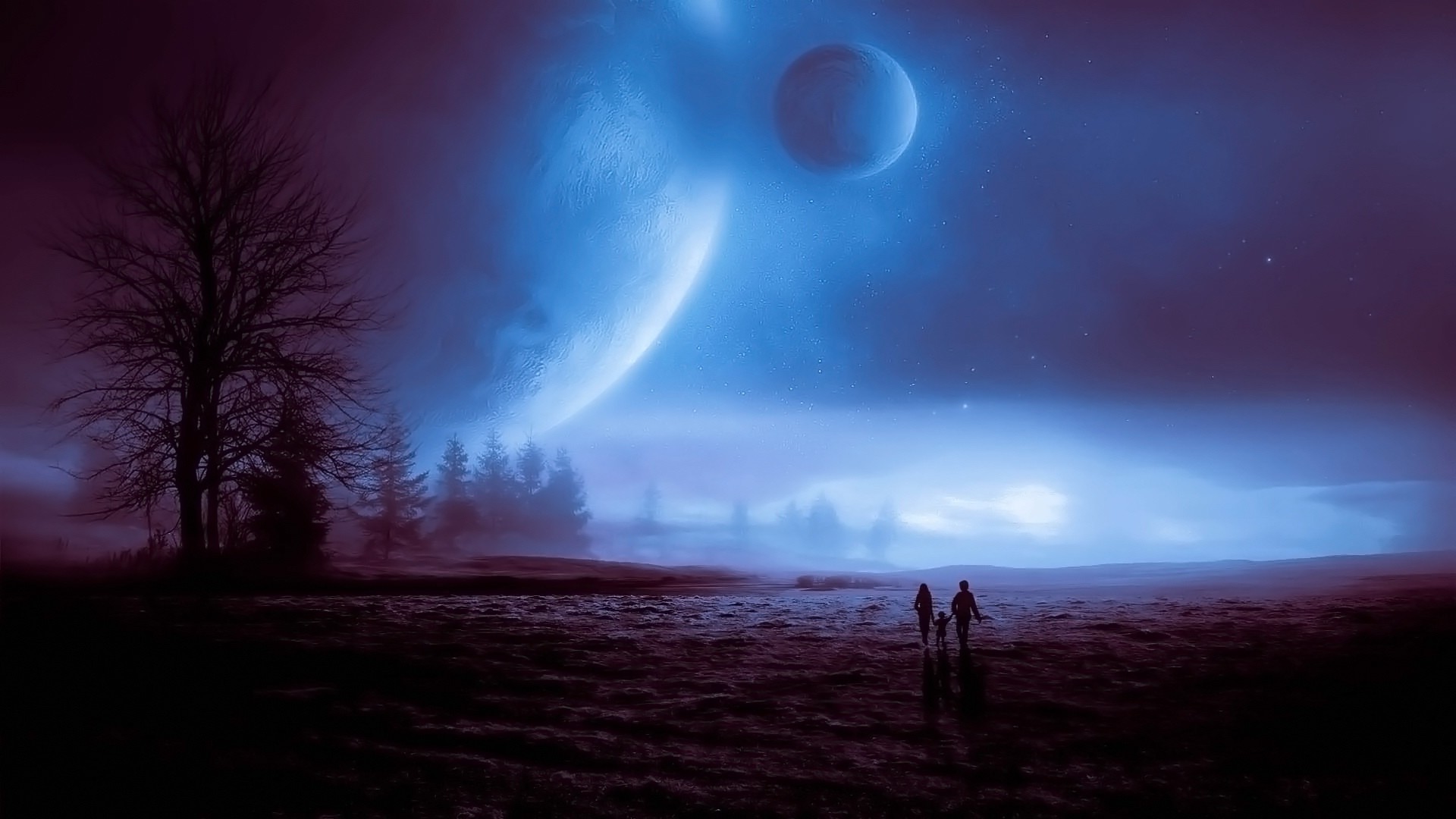 Pôr do sol sobre as montanhas, árvores poderosas, prados suculentos