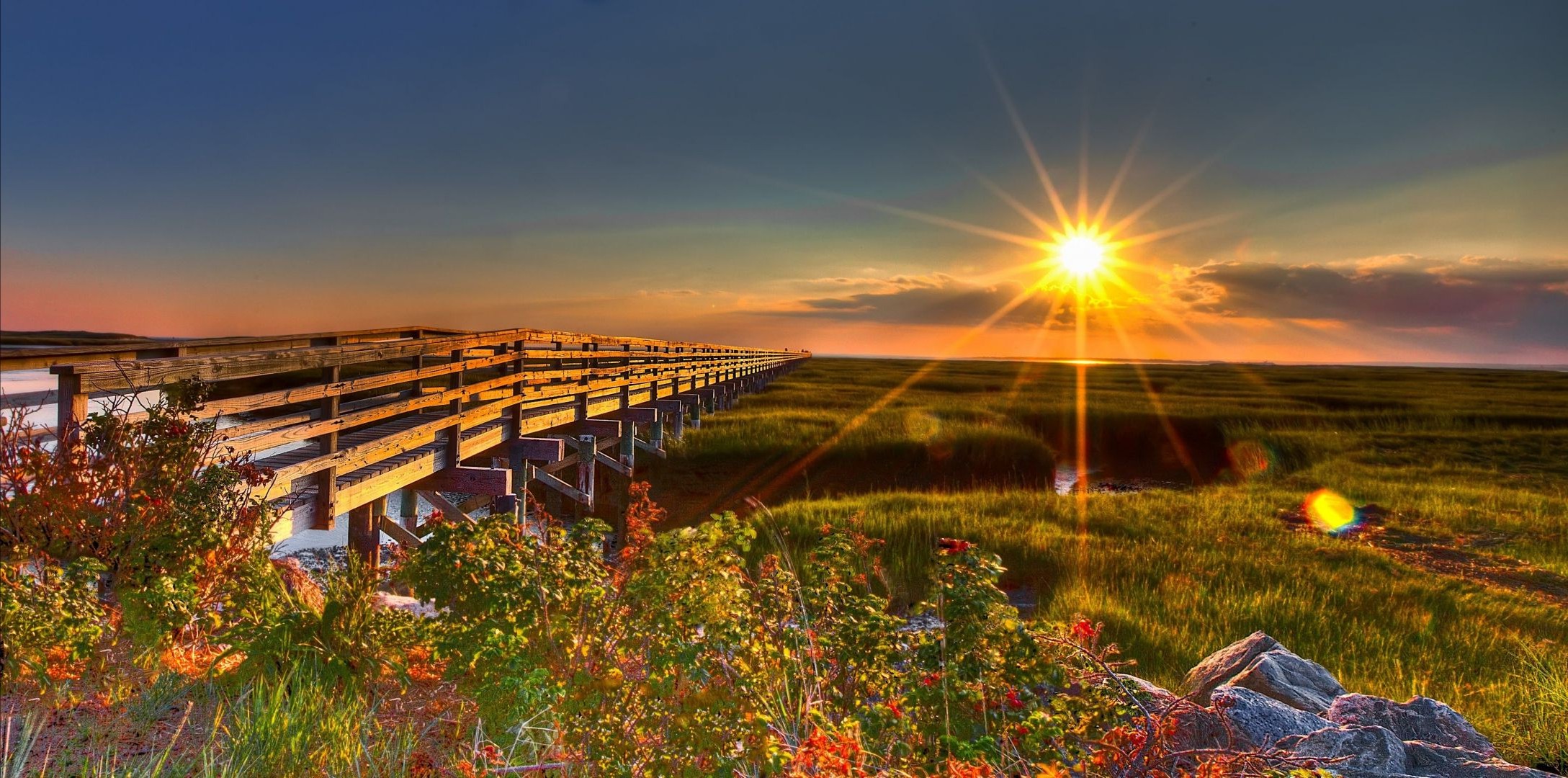 Um prado verde infinito que se transforma em uma floresta no horizonte