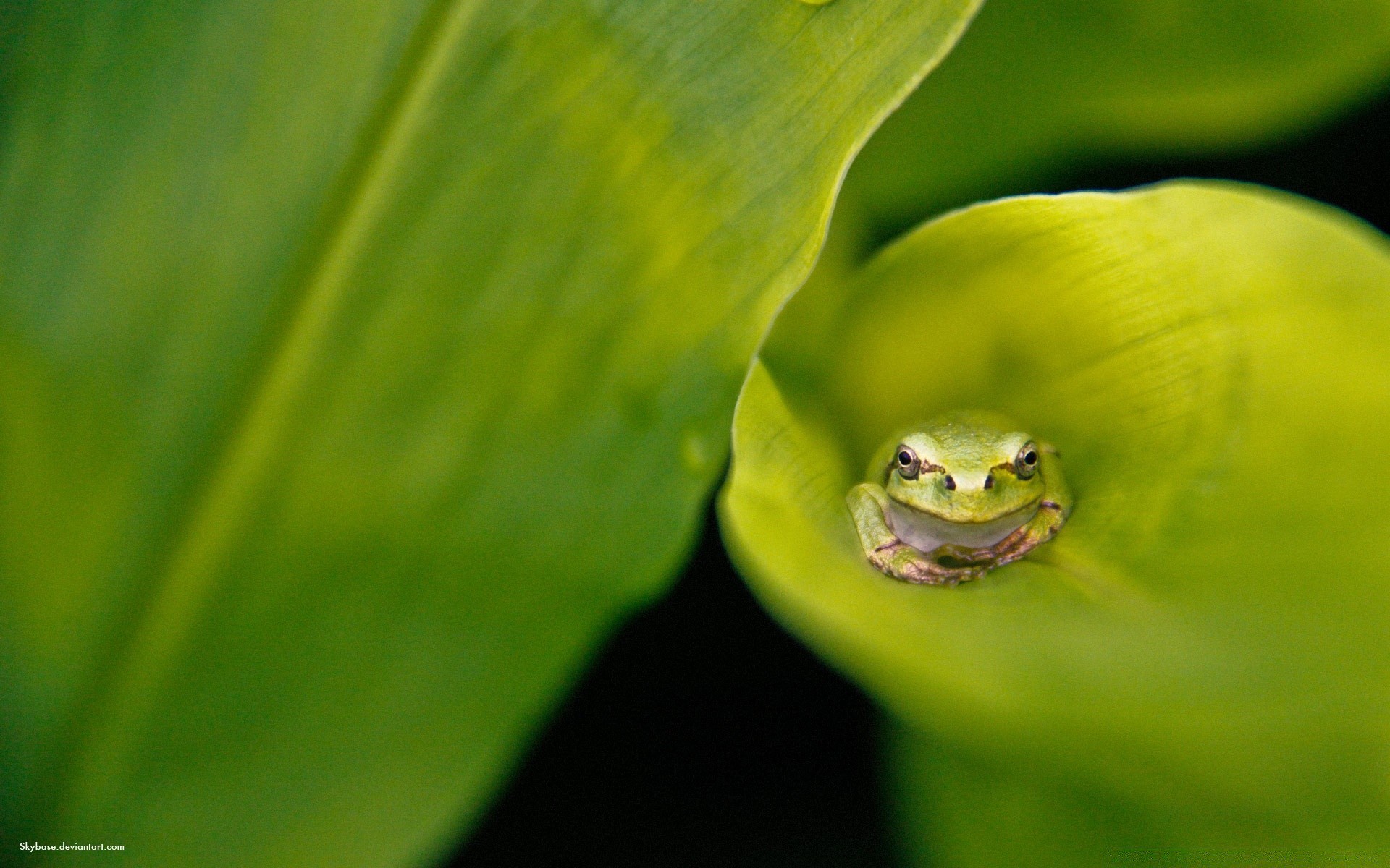 Um sapo se escondeu em uma folha de uma planta de alguém