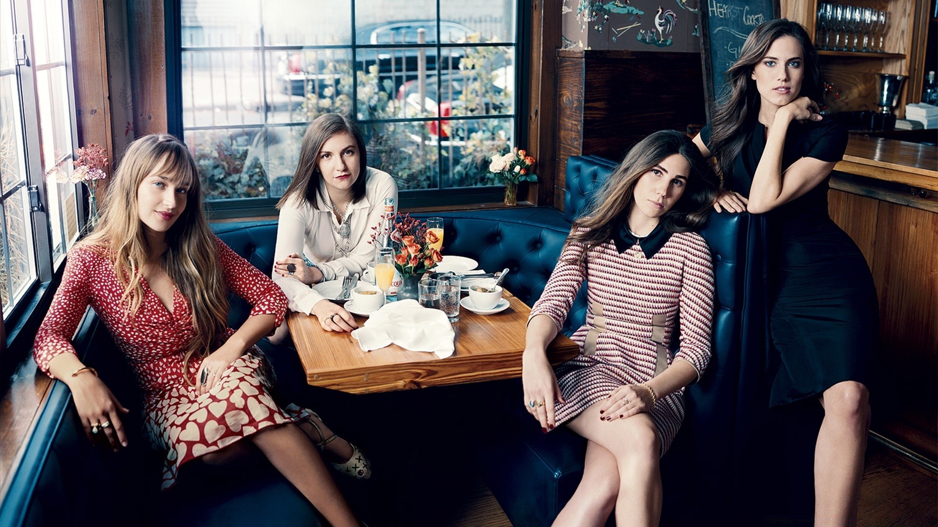 Quatro meninas em um café no sofá
