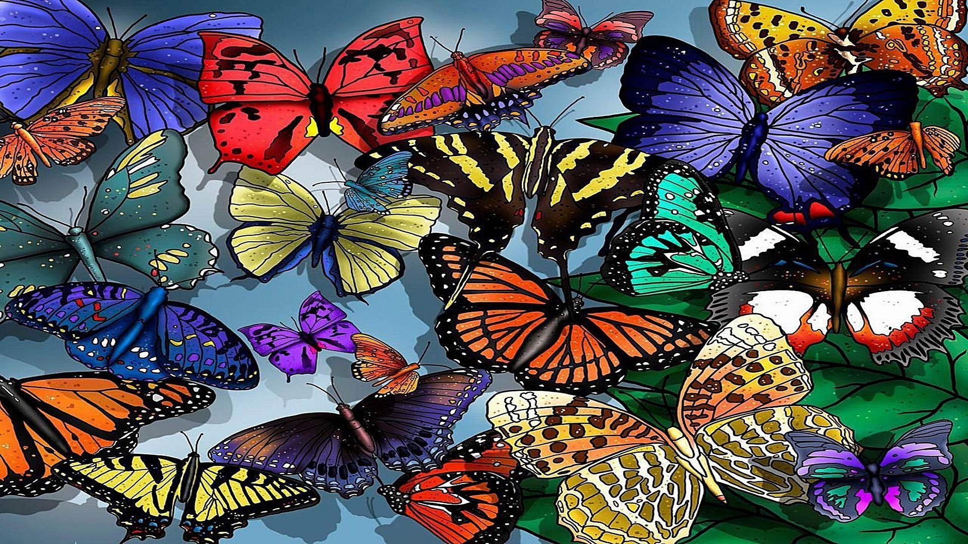 Tela pintada de borboletas brilhantes