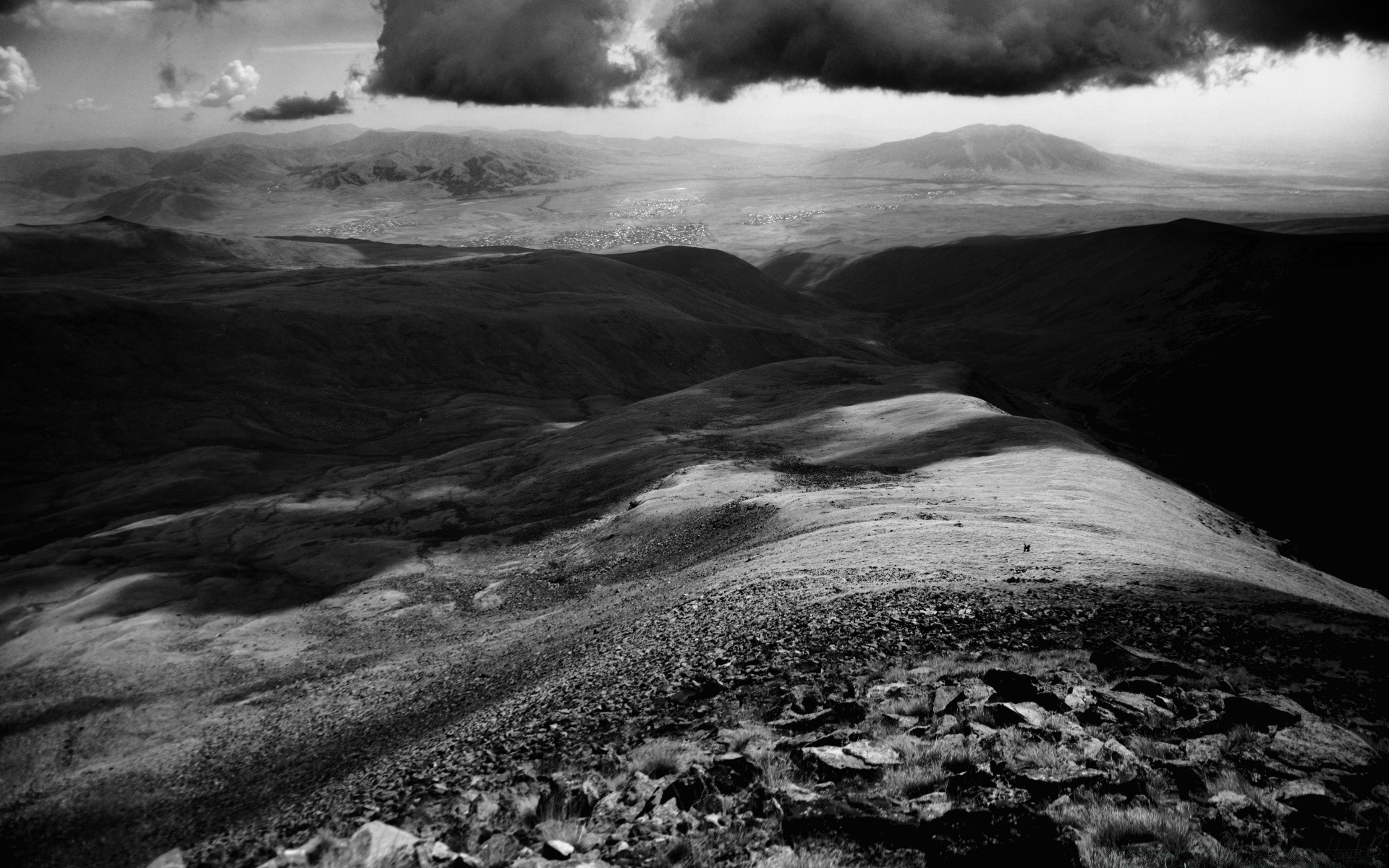 Paisagem noturna: nevoeiro nas montanhas