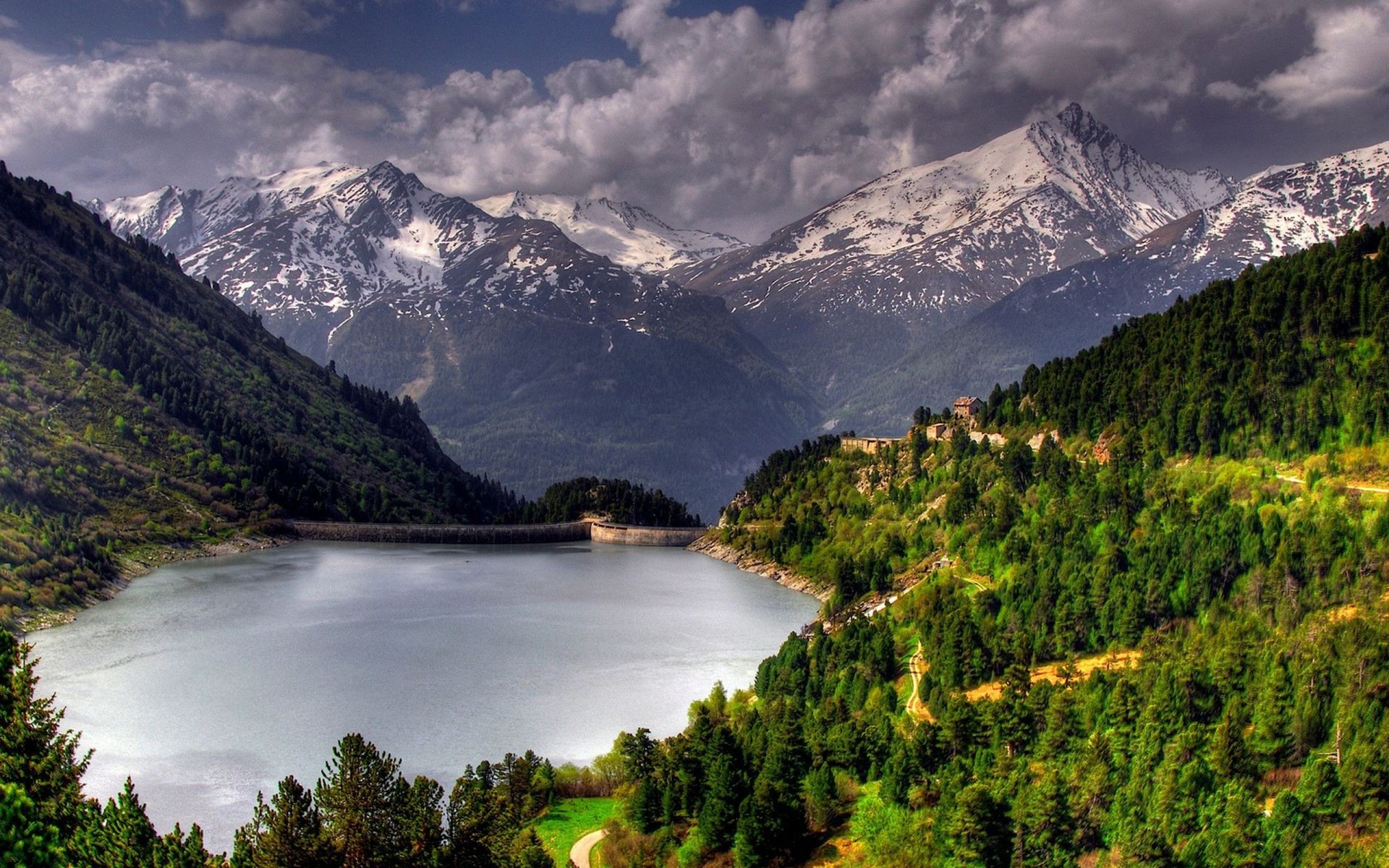 Vista de tirar o fôlego das montanhas sobre o pôr do sol carmesim