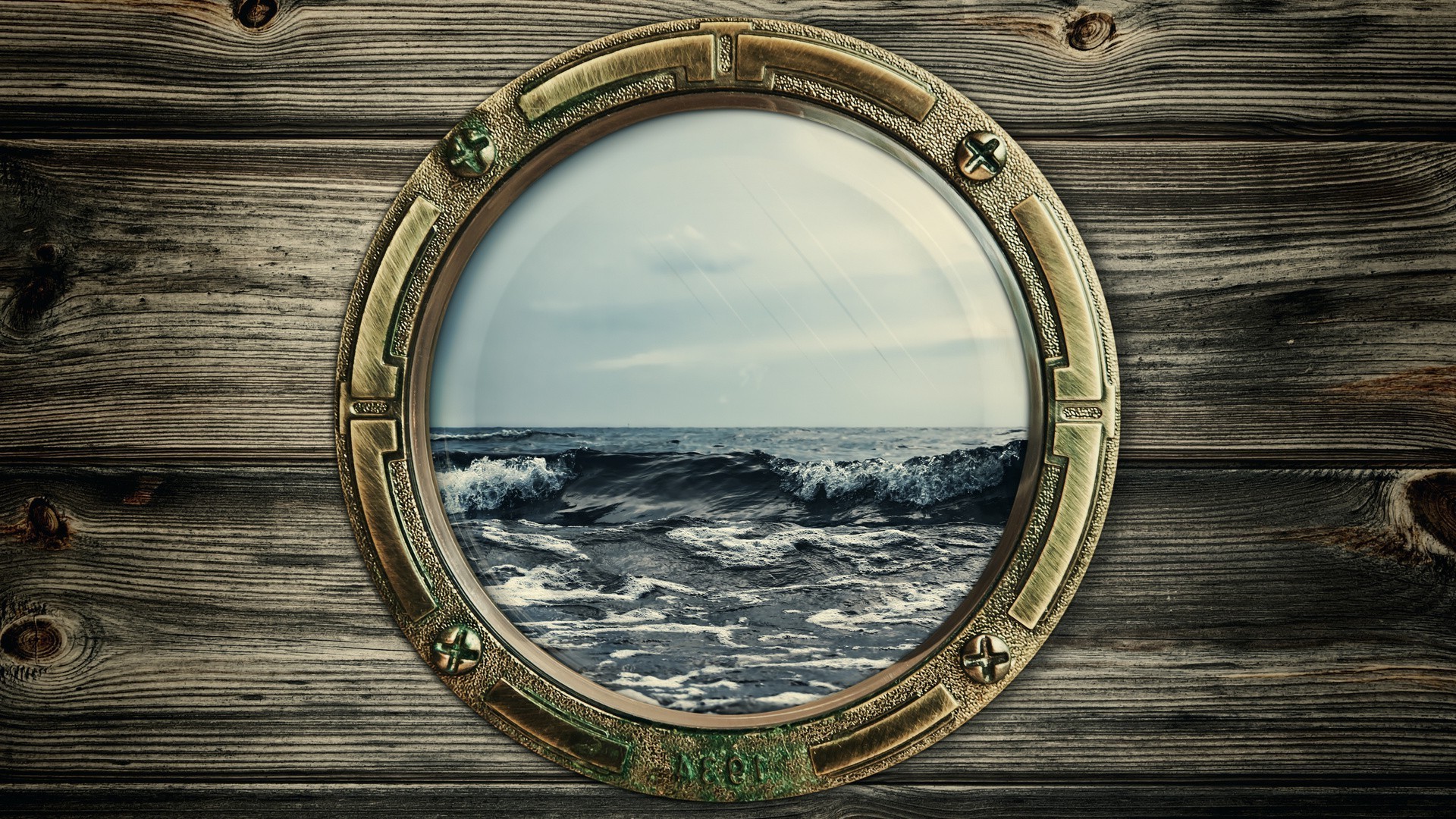 Paisagem da água na janela do navio