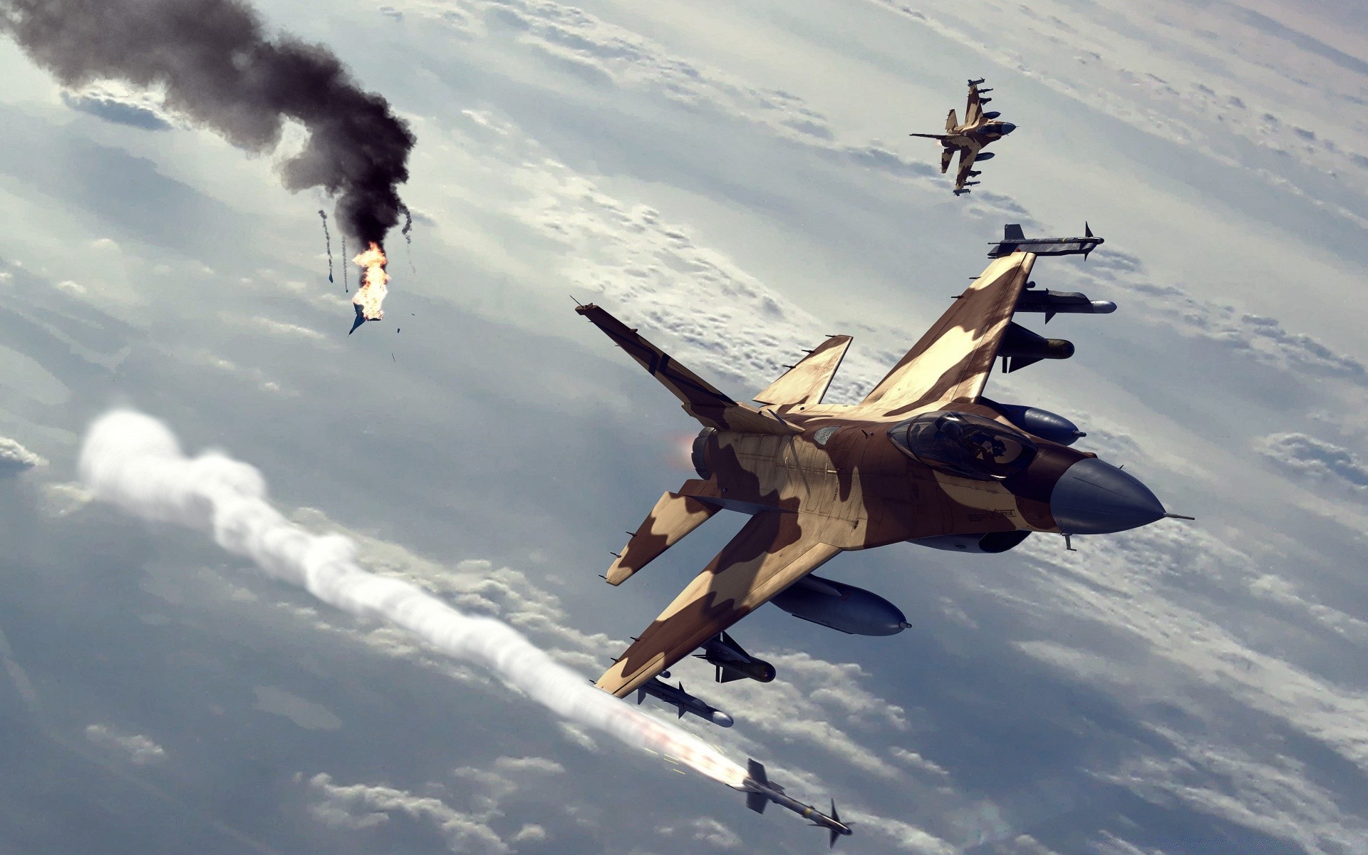 Aviões de combate no céu