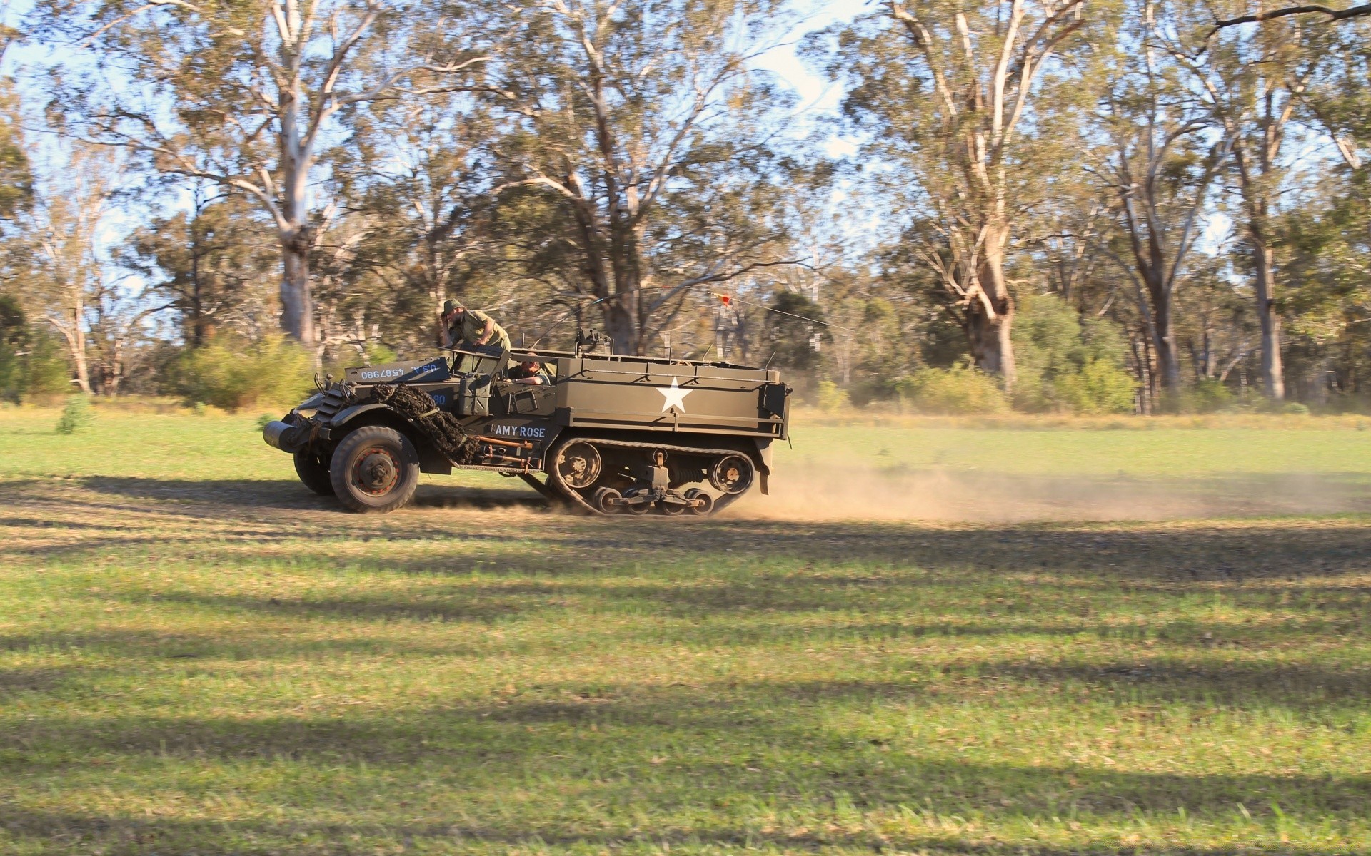 Carro do exército em treinamento na floresta