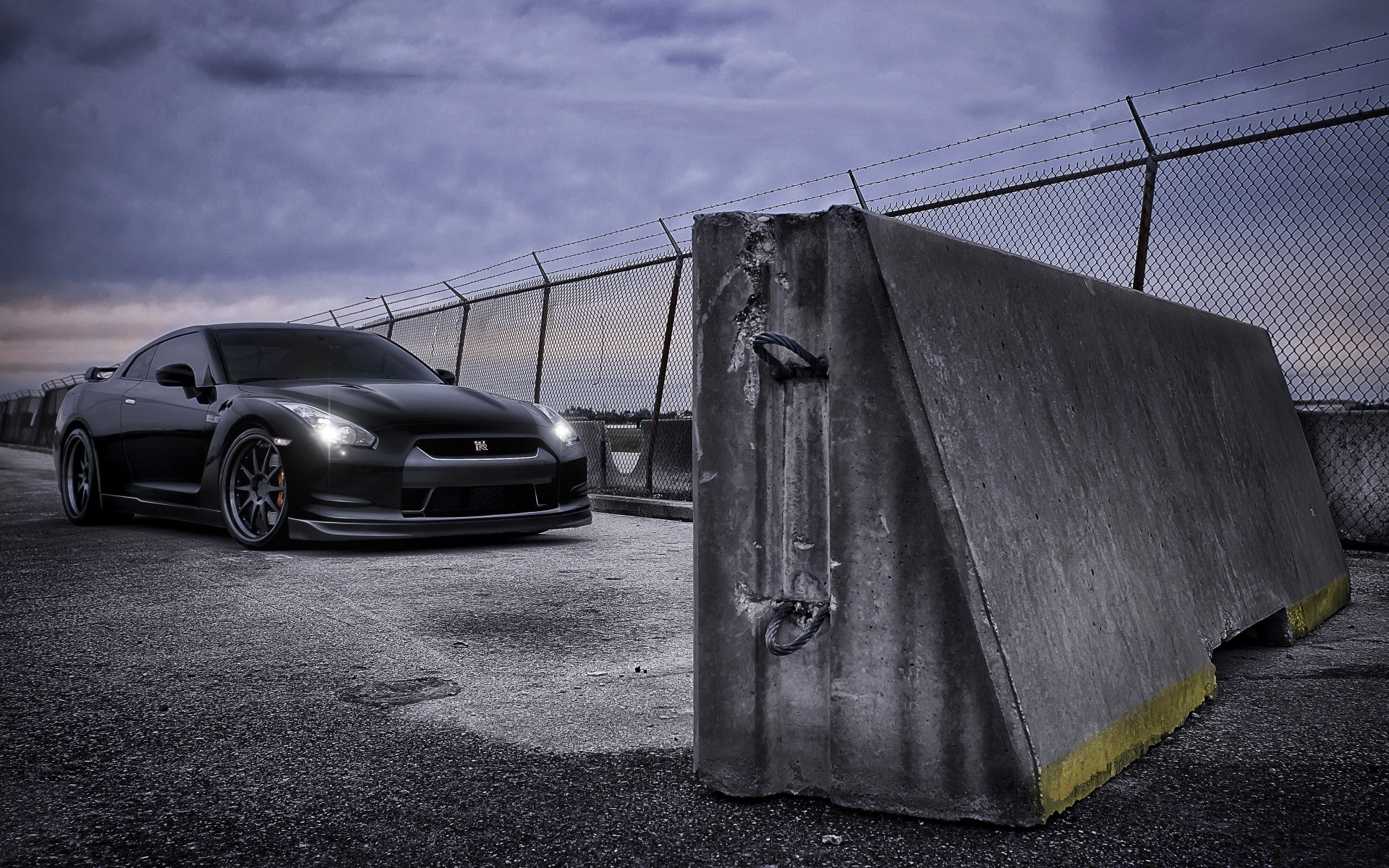 Foto de um belo carro vermelho no fundo do céu do pôr do sol