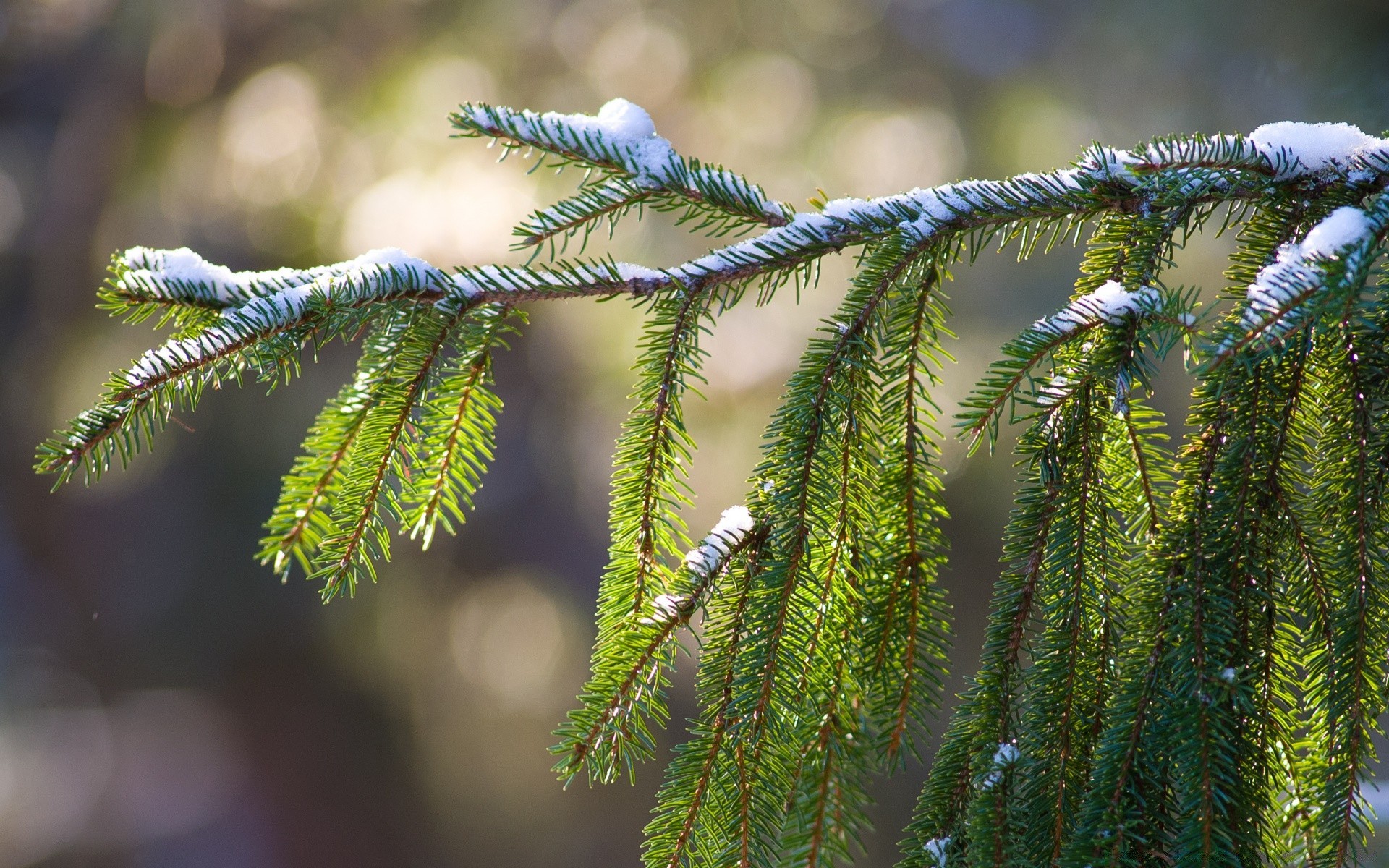 Ramo de abeto polvilhado com neve