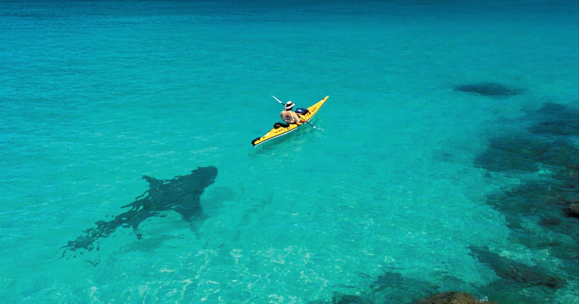 Tubarão se aproxima de homem em Canoa