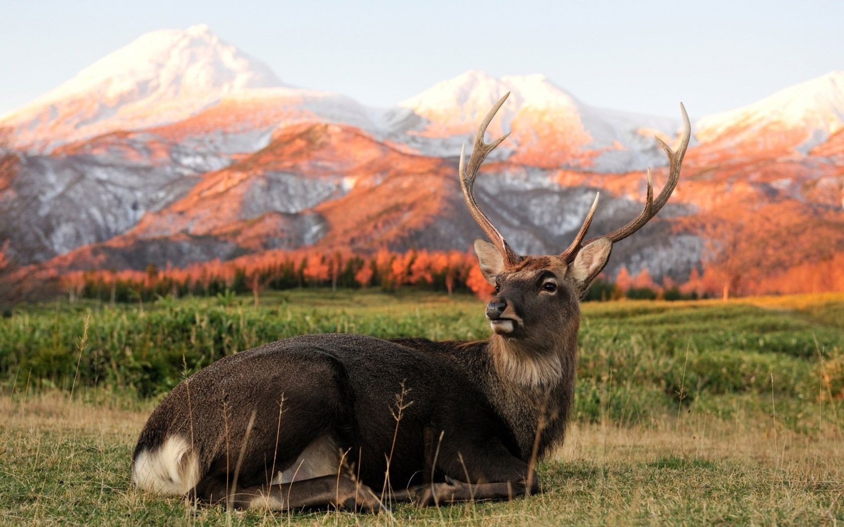 Veado orgulhoso no fundo das montanhas