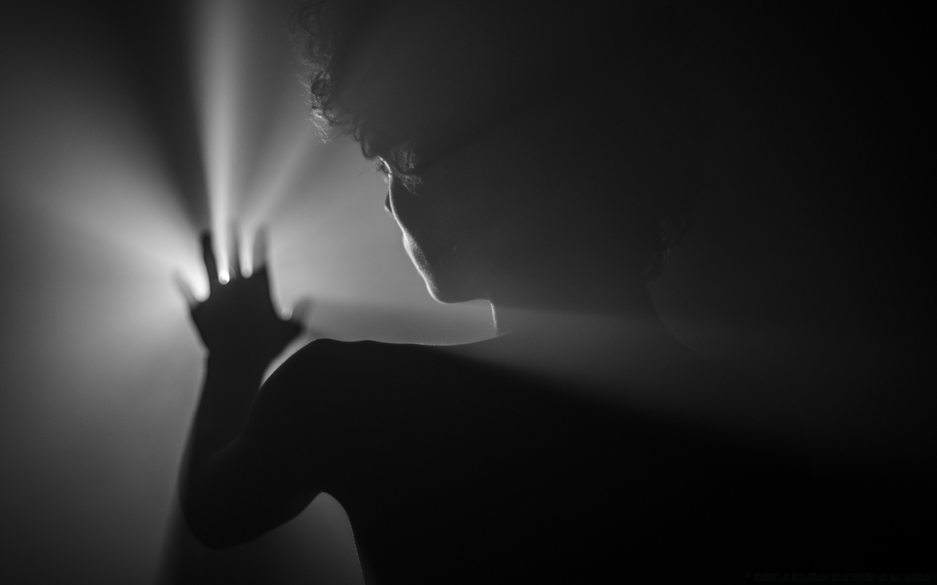 Silhueta de um homem cobrindo a fonte de luz com a mão