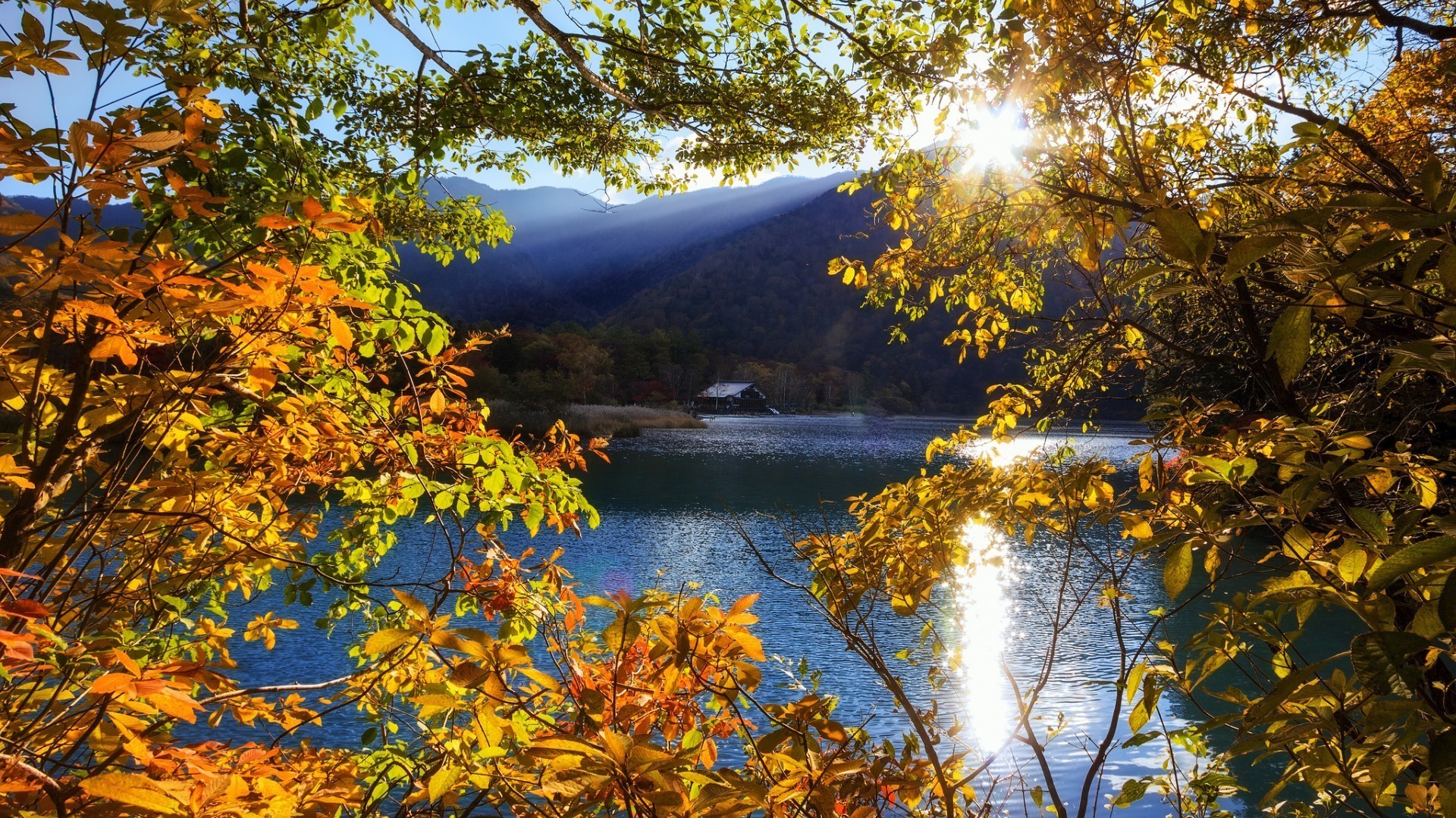 Amanhecer de outono no Rio. Água e folhas de Kras