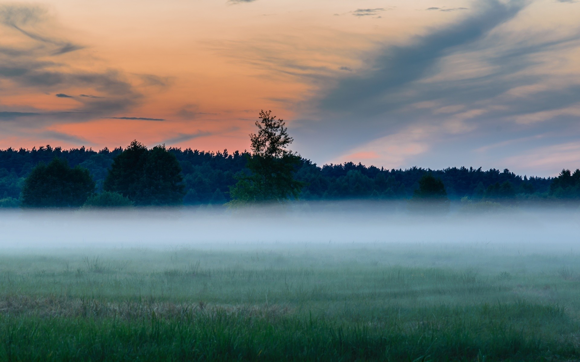 Paisagem com Lago, Casa e árvores ao amanhecer