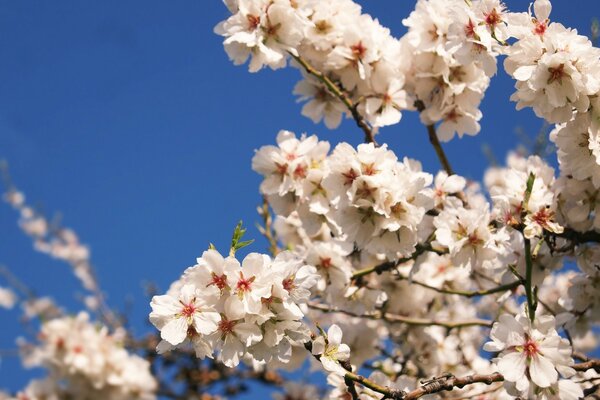 Ramo de cerejeira florescendo com flores cor-de-rosa