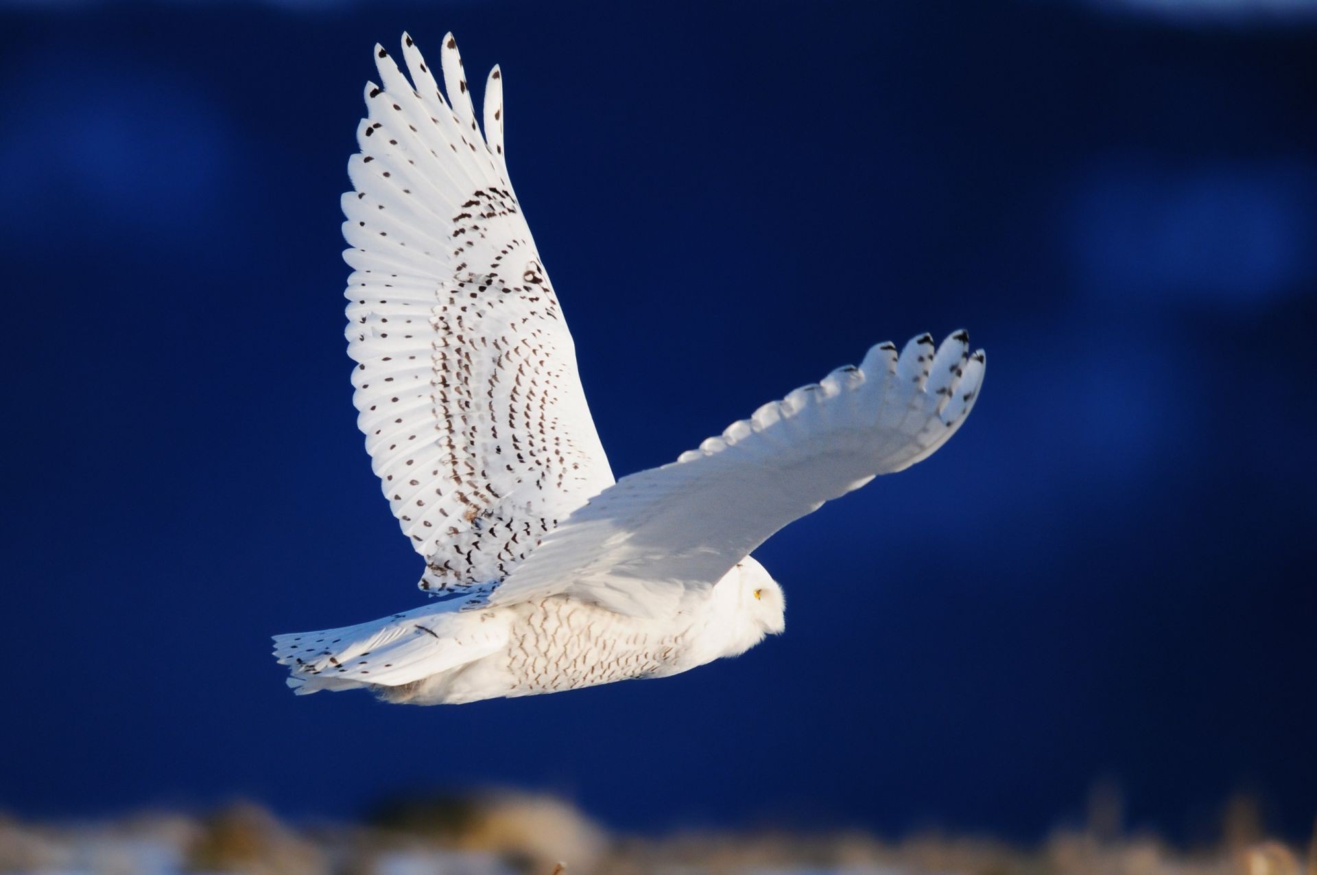 Pássaro coruja branca voando asas