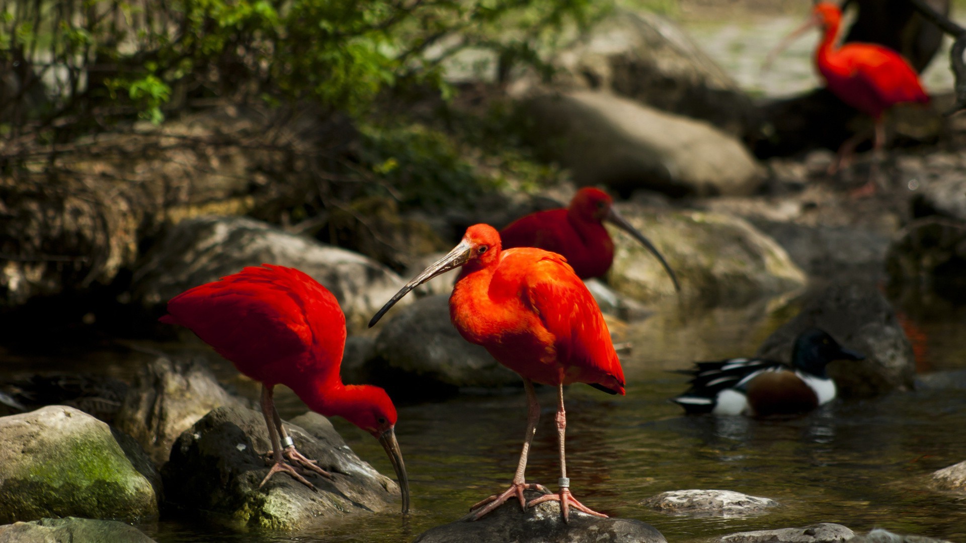 Aves selvagens vermelhas bebem água