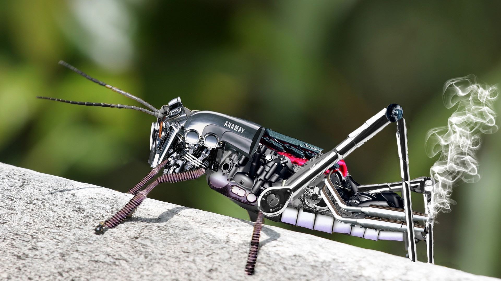 Gafanhoto robô em habitat