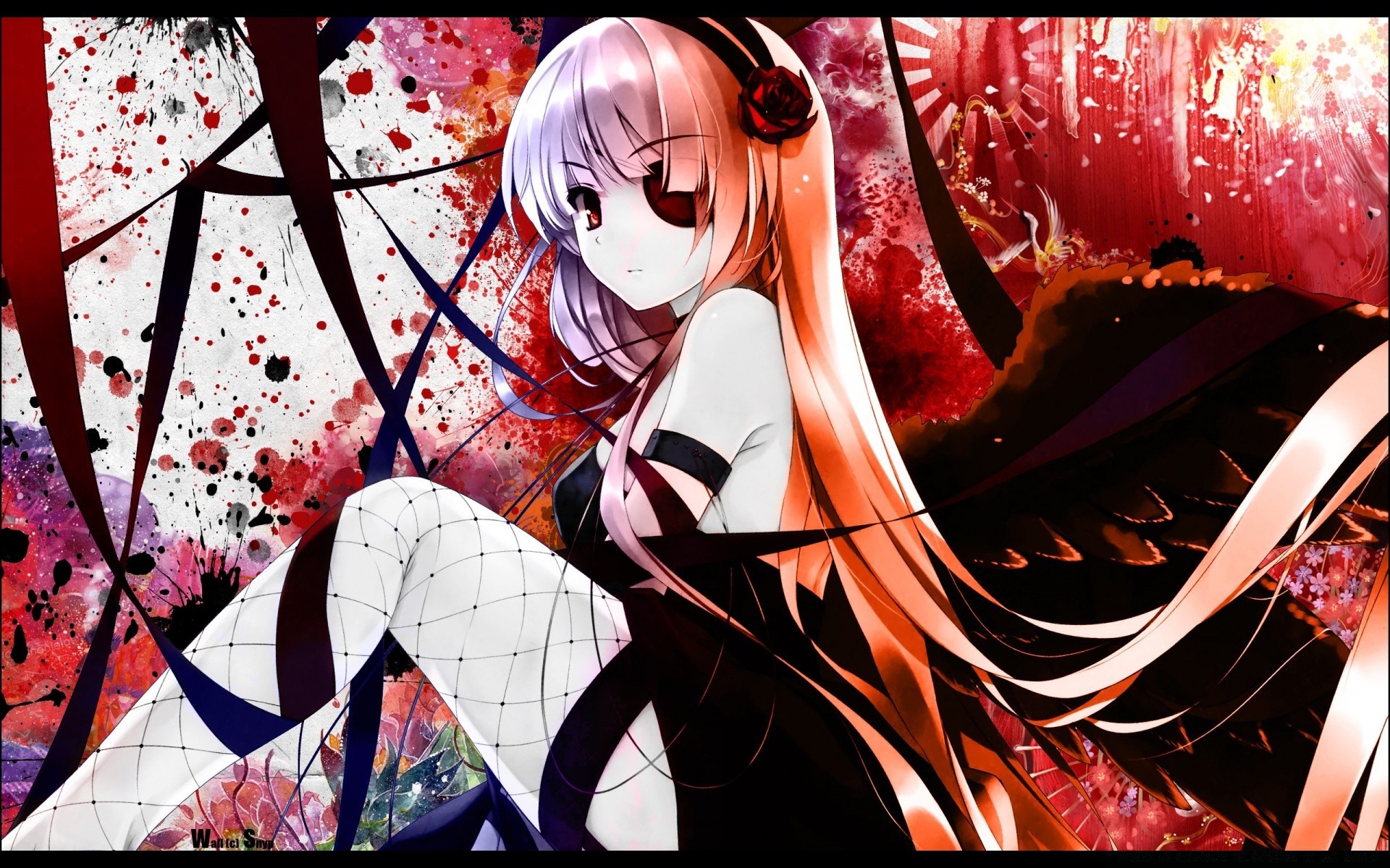 Desenho de uma menina anime com grandes olhos vermelhos em um fundo verdeDesenho de uma menina anime com grandes olhos vermelhos em um fundo verde