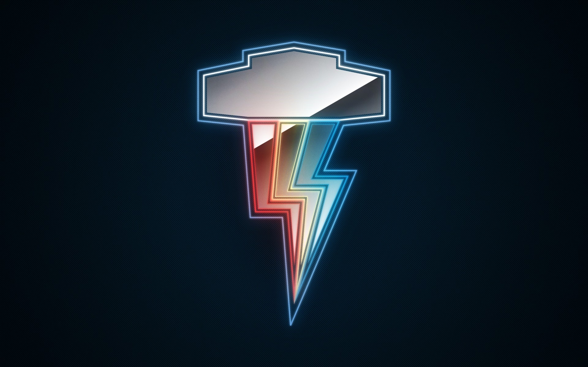 Um ramo verde de abeto com brinquedos pendurados sobre ele em um fundo azul