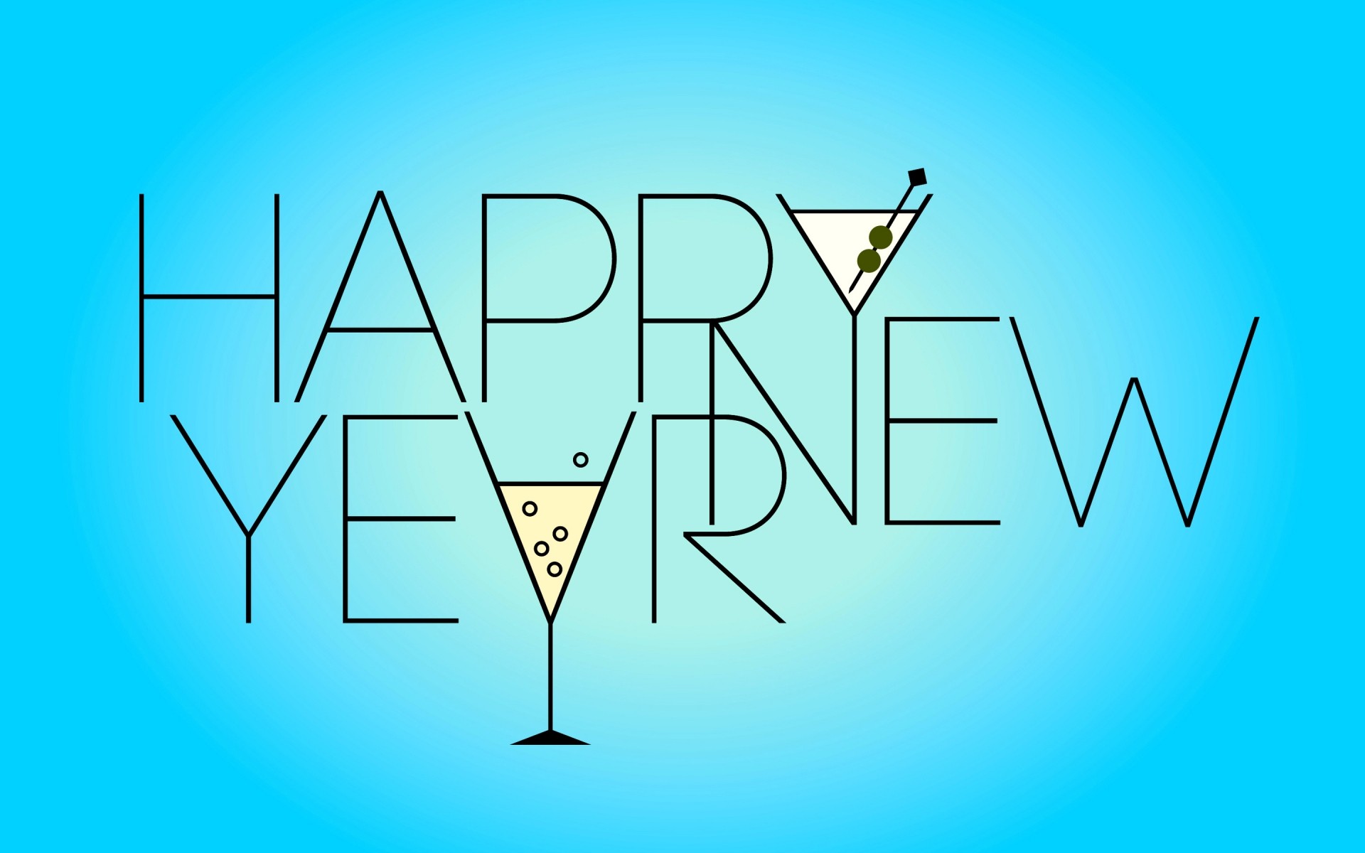 Desenho de design Feliz Ano Novo em um fundo escuro com detalhes vívidos