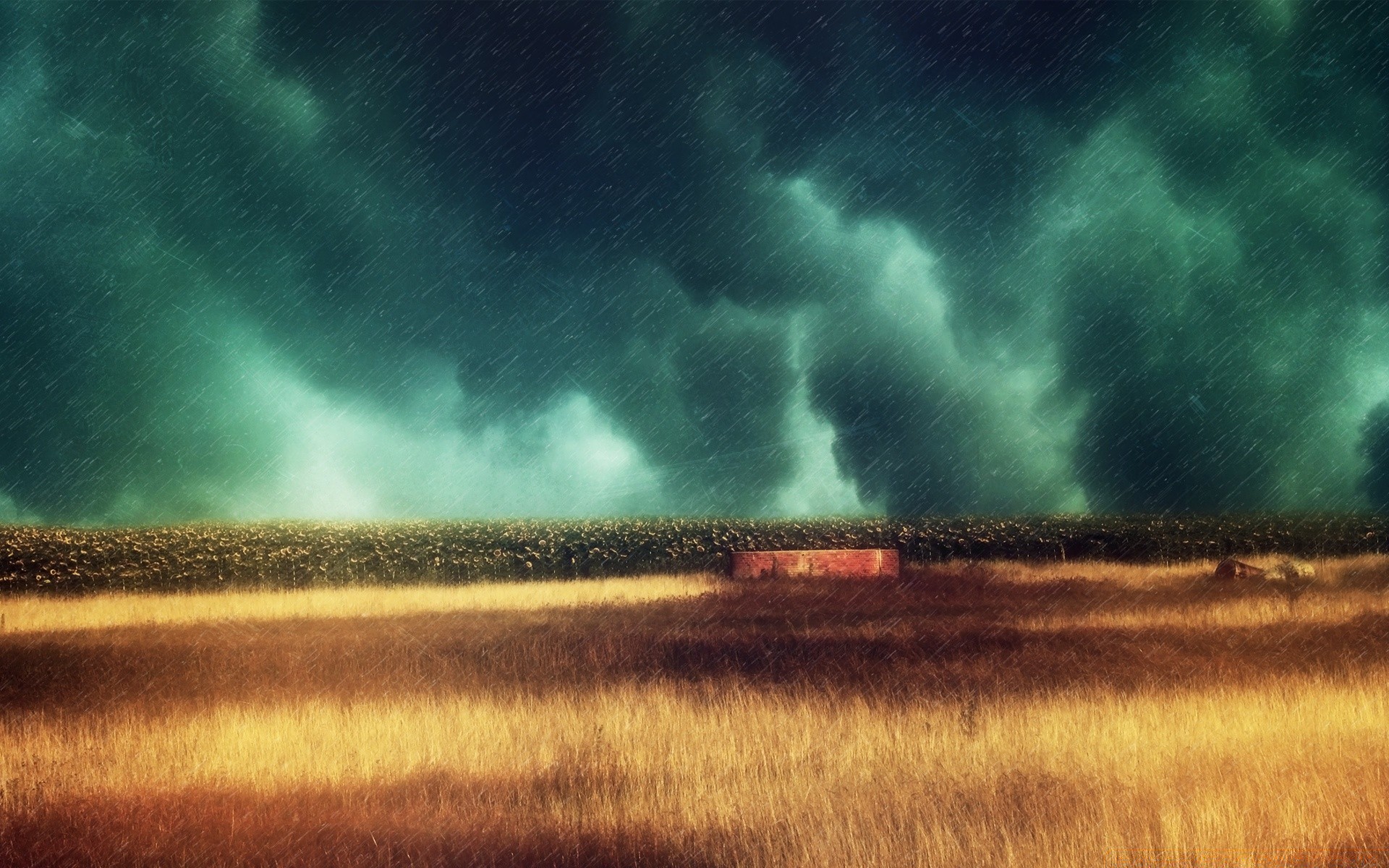 Nuvens negras sobre o campo e tempestade