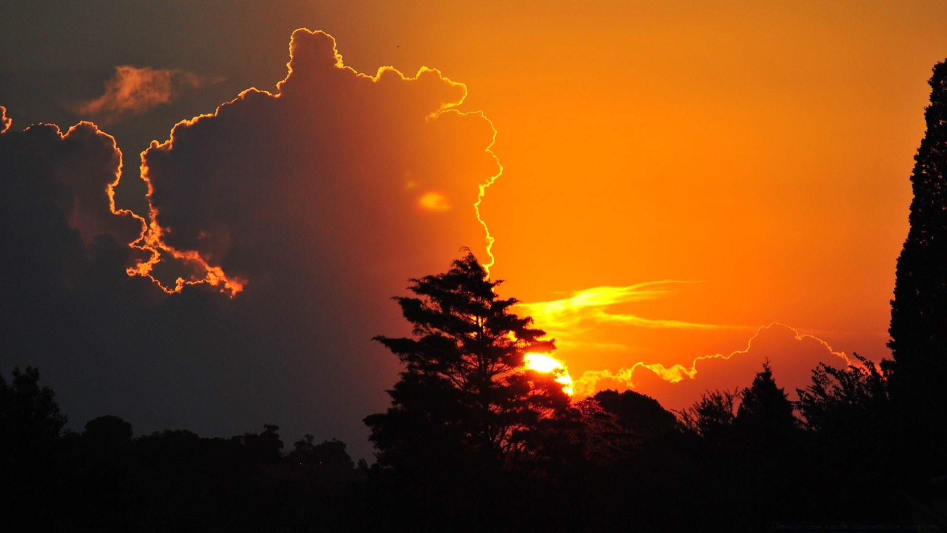 A linha do horizonte é iluminada pelo sol ao pôr do sol
