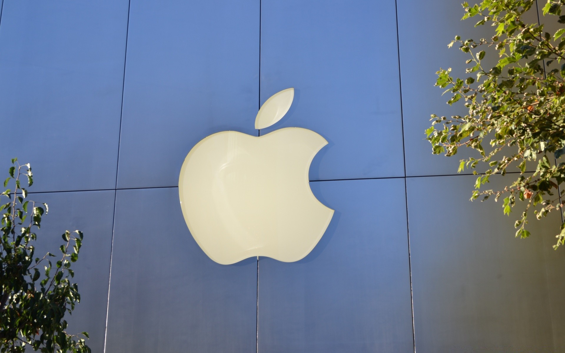 Fundo no computador fundo cinza e Ícone vermelho da apple