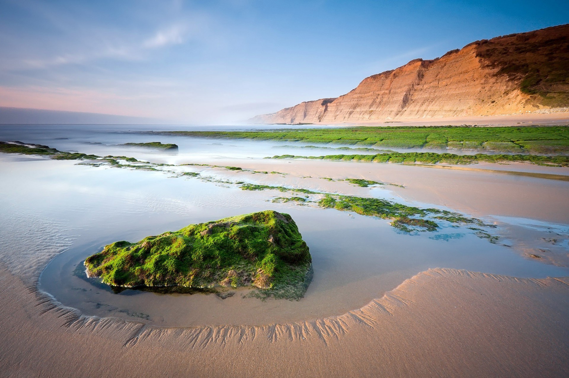 Amanhecer na costa de areia azul