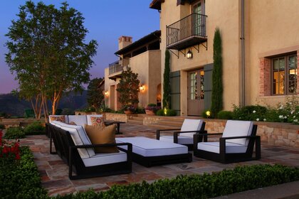 A arquitetura do maravilhoso palácio está em perfeita harmonia com a água e os jatos da fonteA arquitetura do maravilhoso palácio está em perfeita harmonia com a água e os jatos da fonte