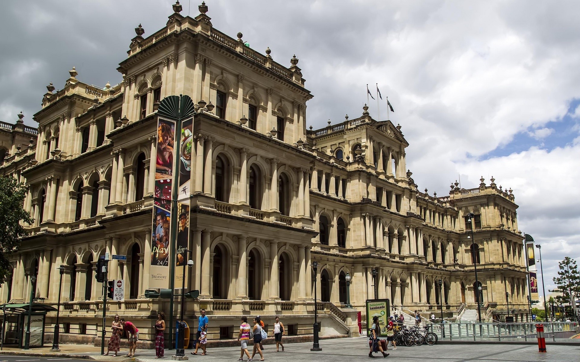 Um reflexo da bela arquitetura da cidade na poça