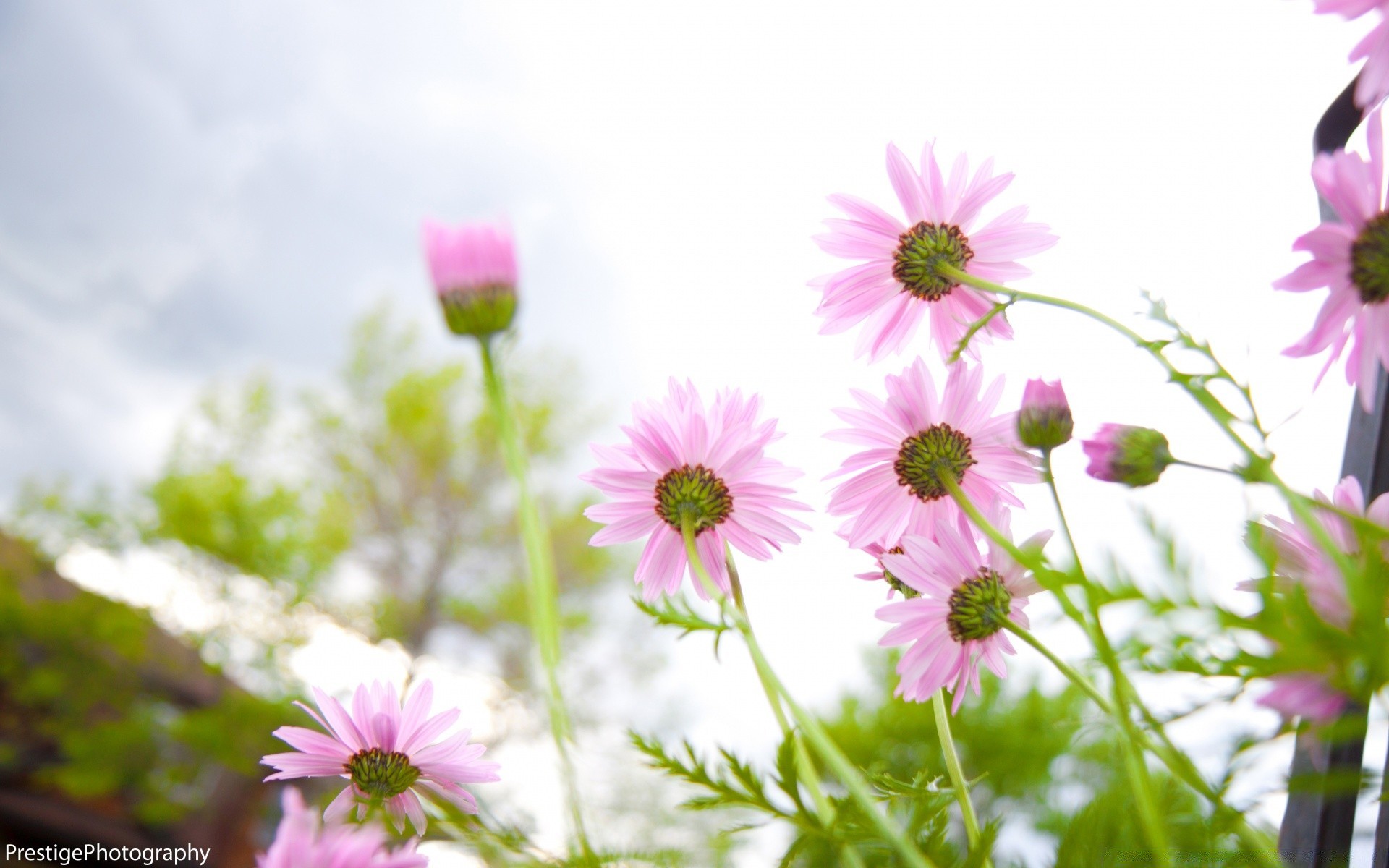 Flores silvestres rosa no fundo do céu