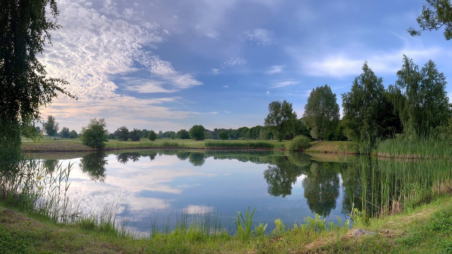 Um campo inteiro de flores coloridas e pôr do sol além da montanha