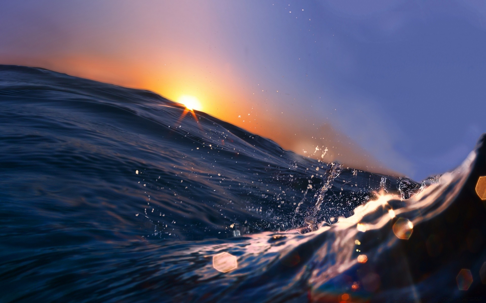Ondas que cortam um pôr-do-sol emocionante