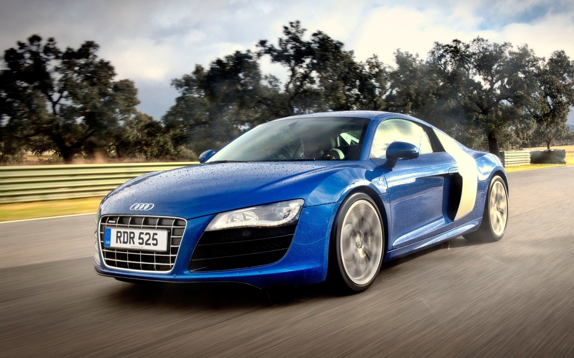 Audi azul correndo pela rodovia